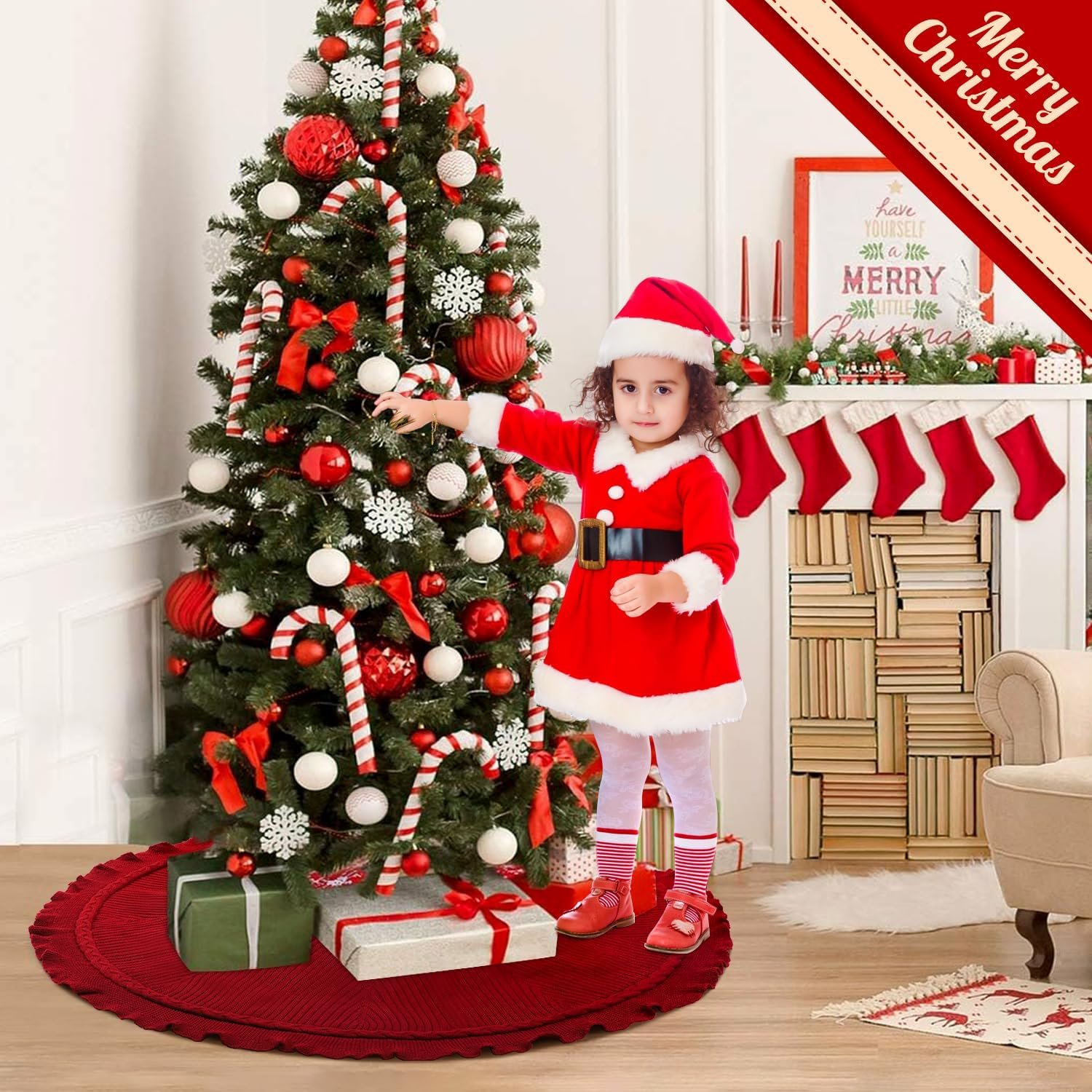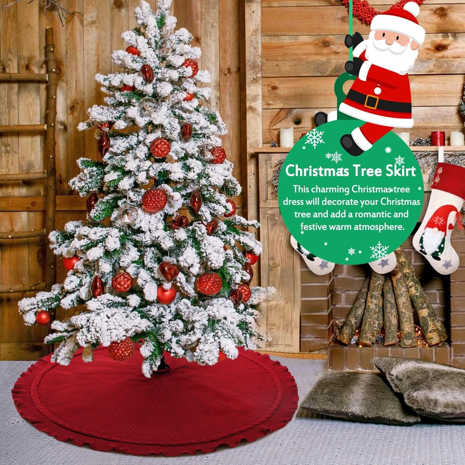 Size: The Christmas tree skirt is 48 inch, suitable for 5 ft to 8 ft Christmas trees. The Christmas decorations tree skirt match with Christmas stockings, Christmas gift or Christmas ornaments perfectly, the vintage Christmas decor makes more festival atmosphere