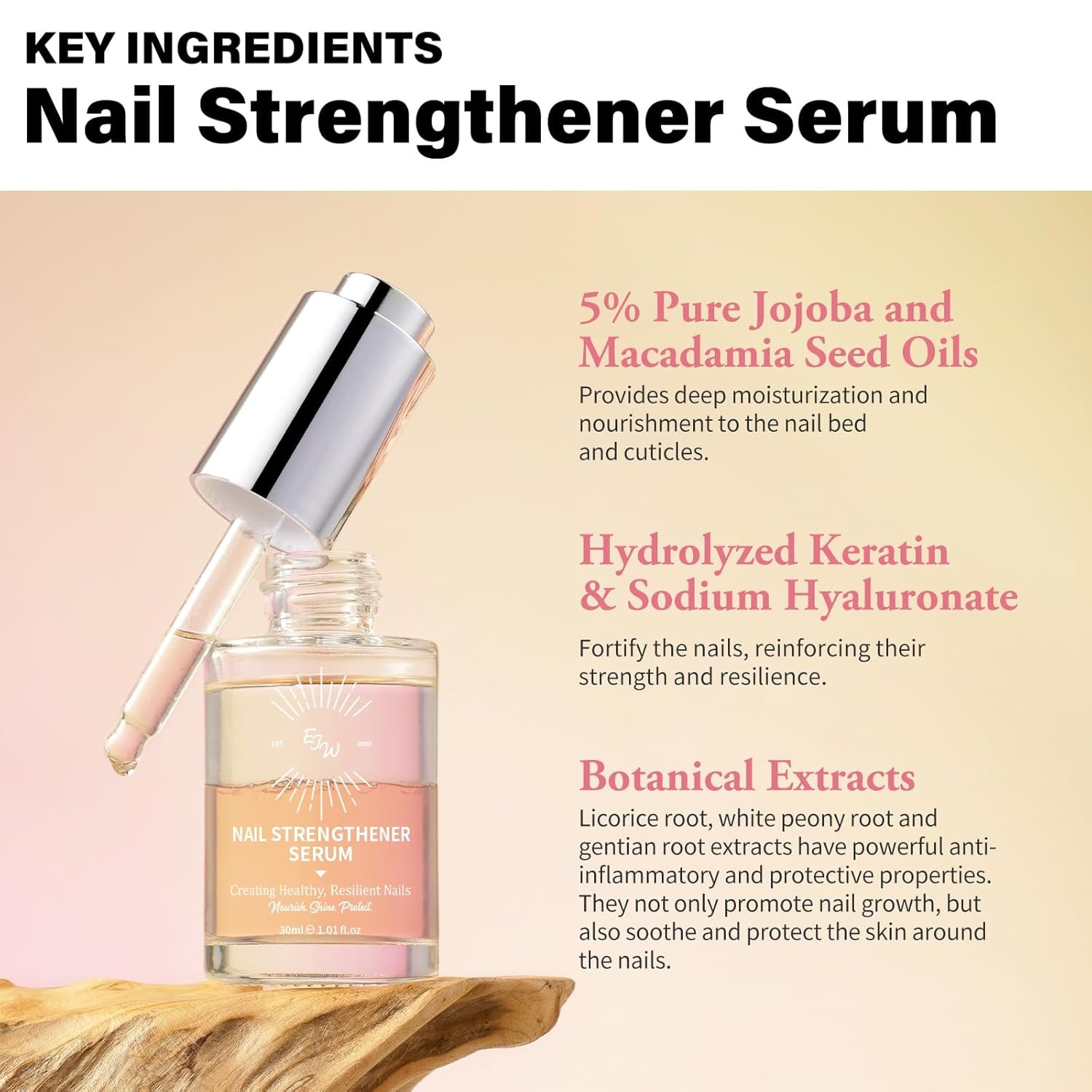 EJW Nail Strengthener – Growth & Conditioning Treatment for Thin, Weak, and Damaged Nails | 1.01 fl oz, Vegan & Cruelty-Free, Base Coat Compatible