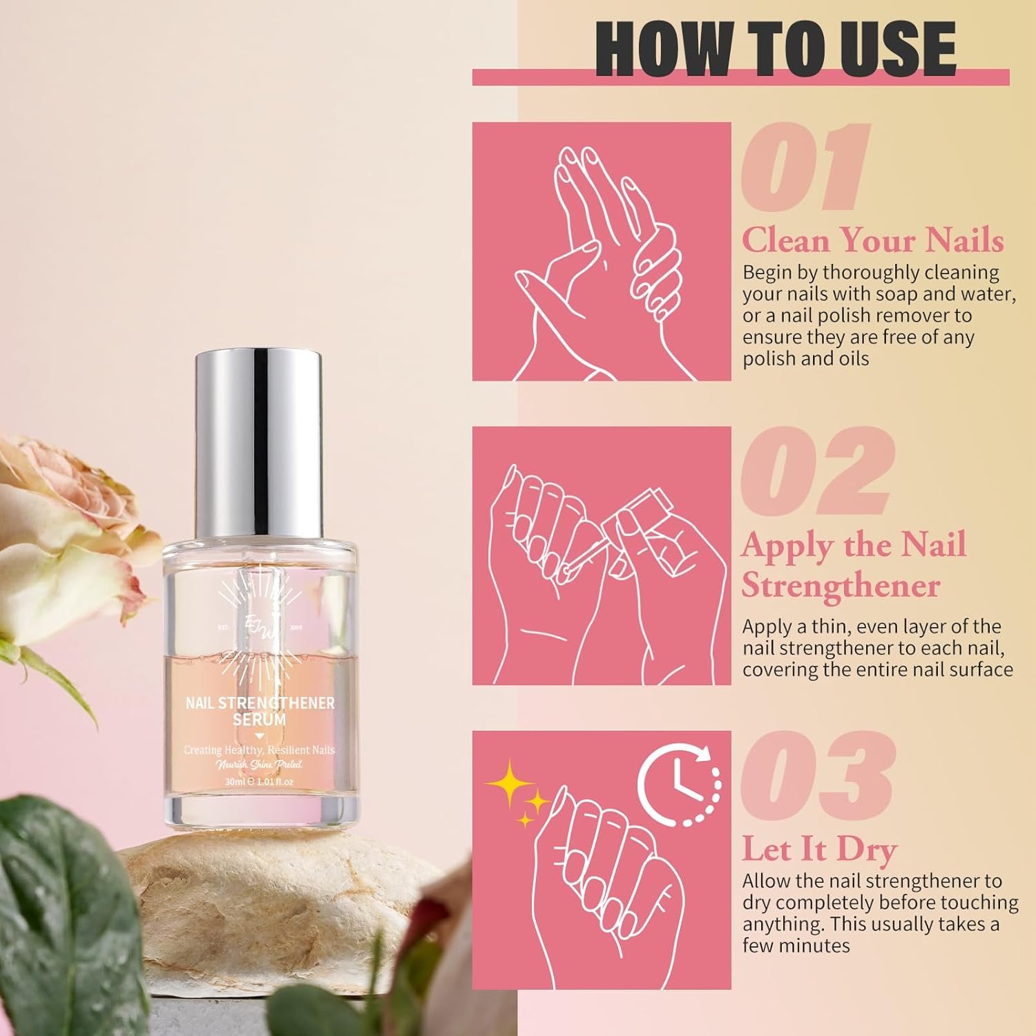 Boosts Nail Growth & Strength: Packed with Tocopheryl Acetate and Sodium Hyaluronate, our nail strengthener nourishes weak, brittle nails and cuticles, promoting faster growth and a natural, healthy shine. Perfect for transforming thin and damaged nails into stronger, more resilient ones;