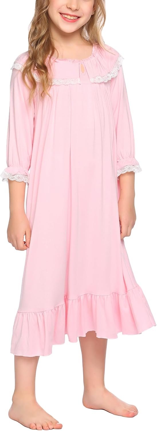 Ekouaer Girls Princess Nightgowns Long/Short Sleeve Pajama Dress for 4-13 Years