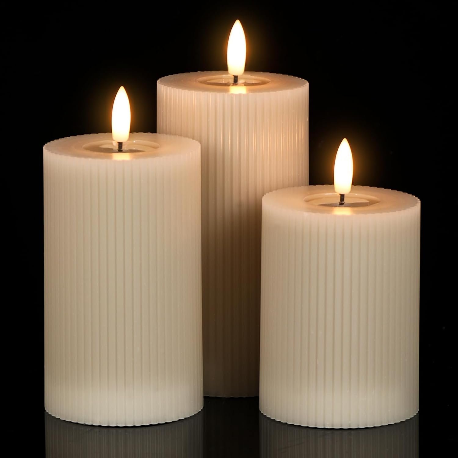 Eldnacele Vertical Stripe Pillar Flameless Candles with 6 Hours Timer, Battery Operated 3D Wick Flickering Warm Lights Real Wax Gray LED Candles Dinner Indoor Holiday Christmas Decor(3Pcs,3″×5″/6″/7″)