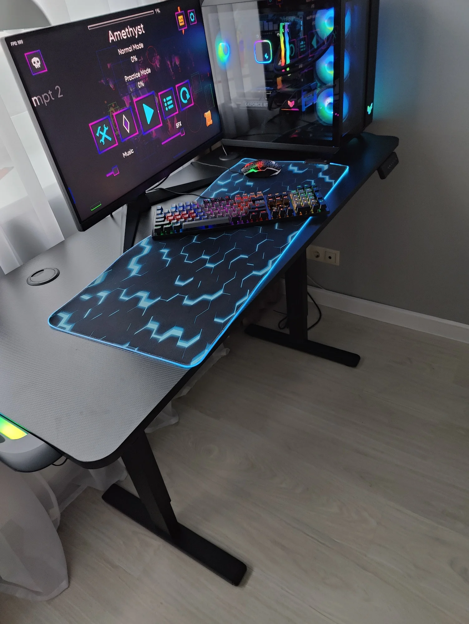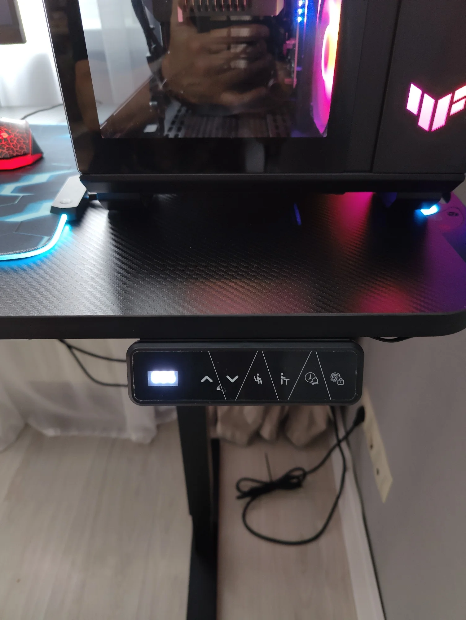 1 review for Electric Adjustable Height Computer Desk Carbon Fiber Gaming Table for Home Sturdy and Spacious Room Motion Desk Standing Table