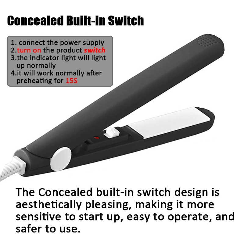 Electric Ceramic Mini Hair Straightener Unisex Portable Flat Iron Wet/Dry Straightening Curling Irons Black FastHeat Hair Curler