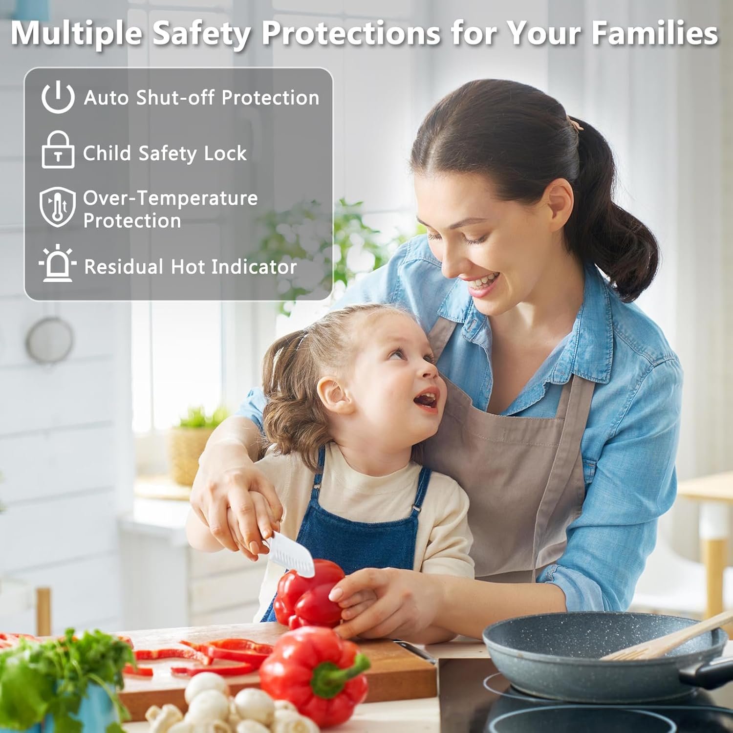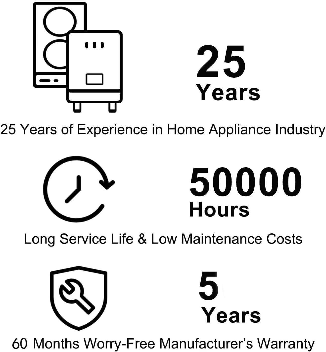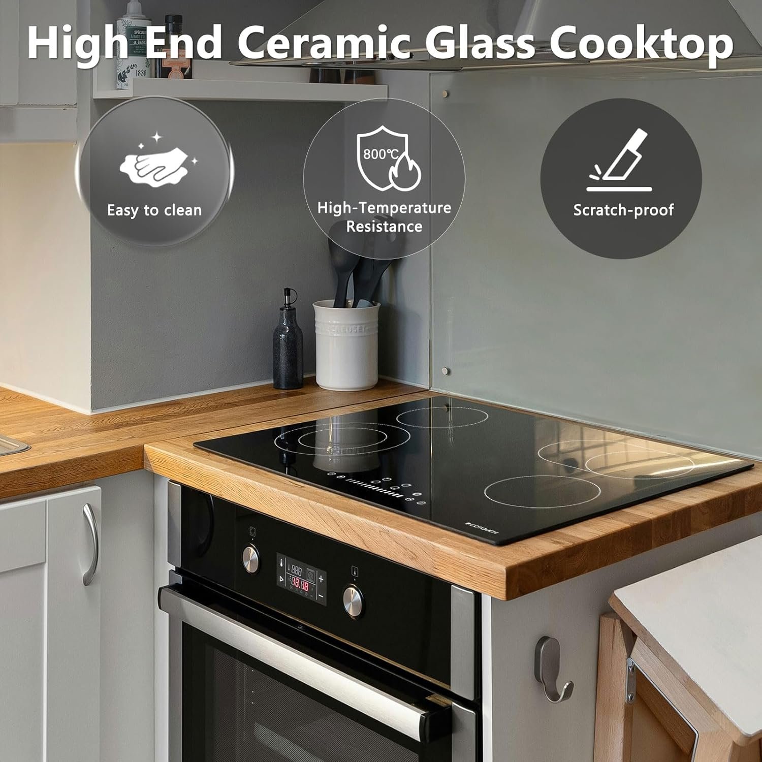 Safe 30″ Ceramic Glass Cook Top: Applied with with multiple safety protections, such as Residual Heat Indicator, Over-Temperature Protection, Auto-Shutoff Protection, Child Lock, these greatly protects the cooking safety of you and your families, also no induction radiation to children and pregnant women. Strict tested during manufacturing and approval by ETL standards, you could expect long lifespan of the electric cooktop 30 inch