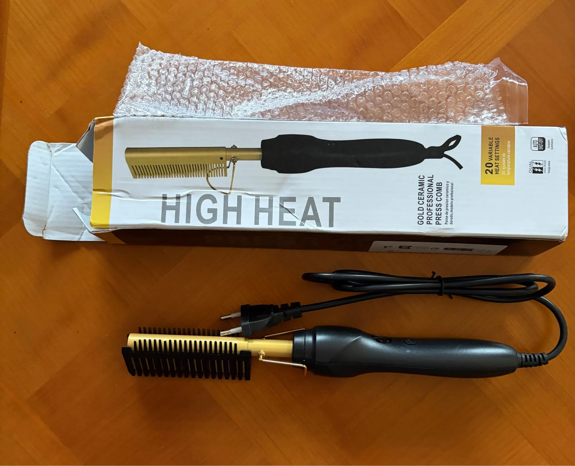 The heated comb can be adjustable to different hair types according to temperature.