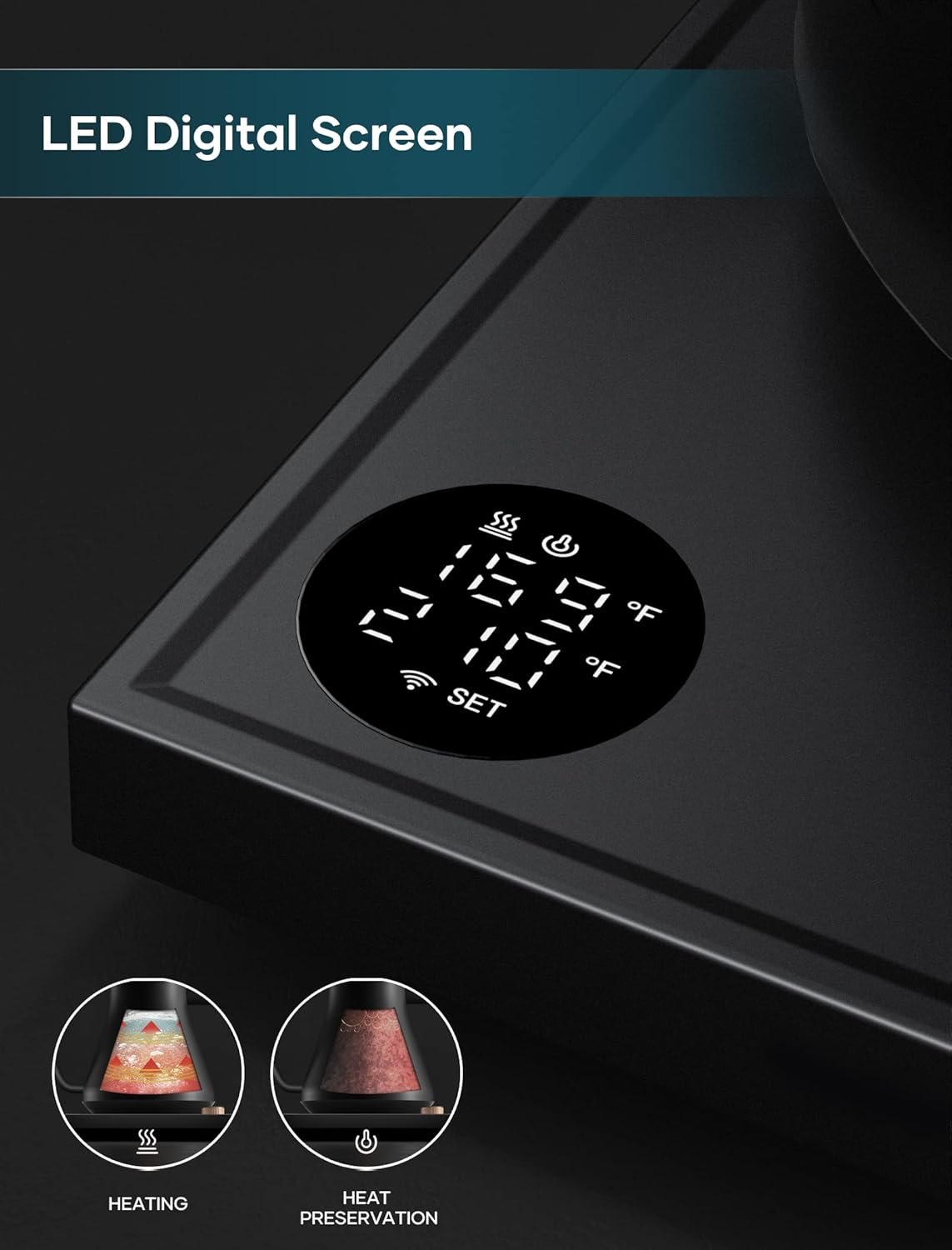 ±1℉ Temperature Accuracy – The intelligent base’s built-in temperature control program. The program will adjust the heating power when the water temp approaches the desired temp according the temp probe detects the temp change.