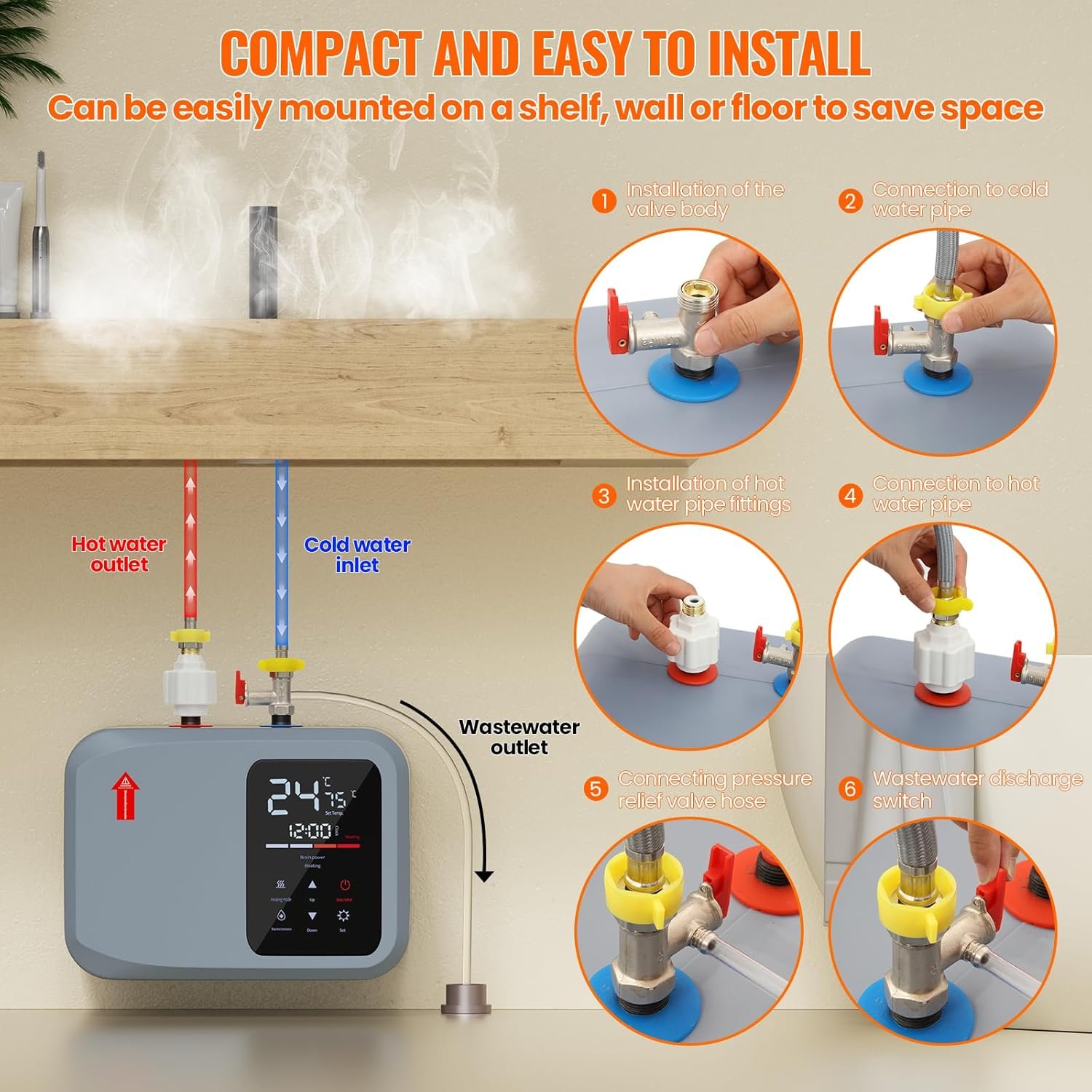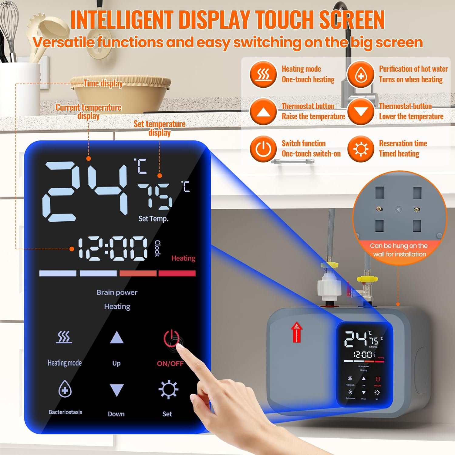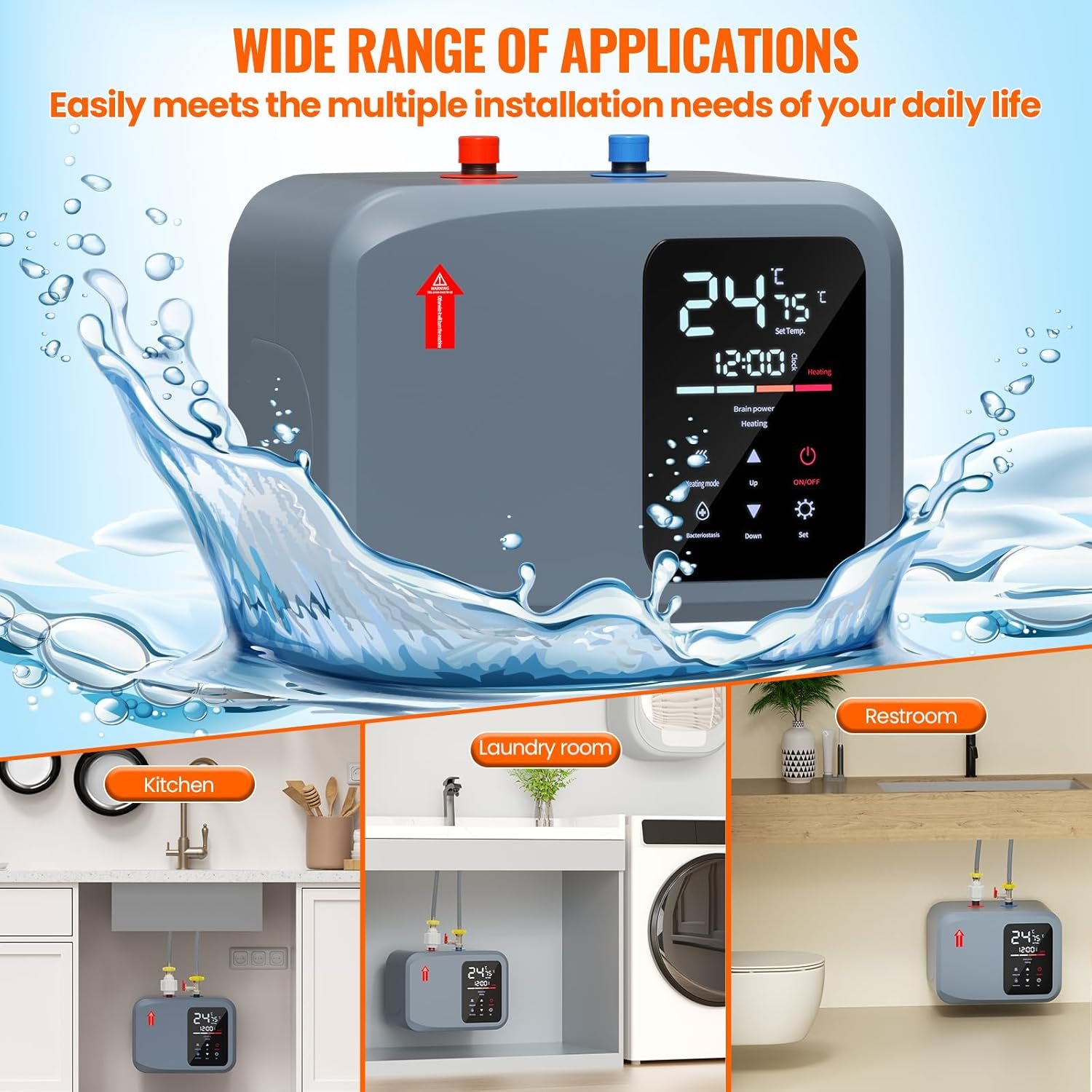 【Super High Efficiency】-Small Hot Water Heater Energy efficient with plenty of hot water,also known as demand-type or instantaneous water heaters, provide hot water only as it is needed,our water heaters with thermal efficiency up to 90%,Instant hot water at the point of use, whenever needed,Also equipped with a high-definition intelligent digital LED display,effortlessly adjust the temperature between 86°F-158°F according to your preferences.