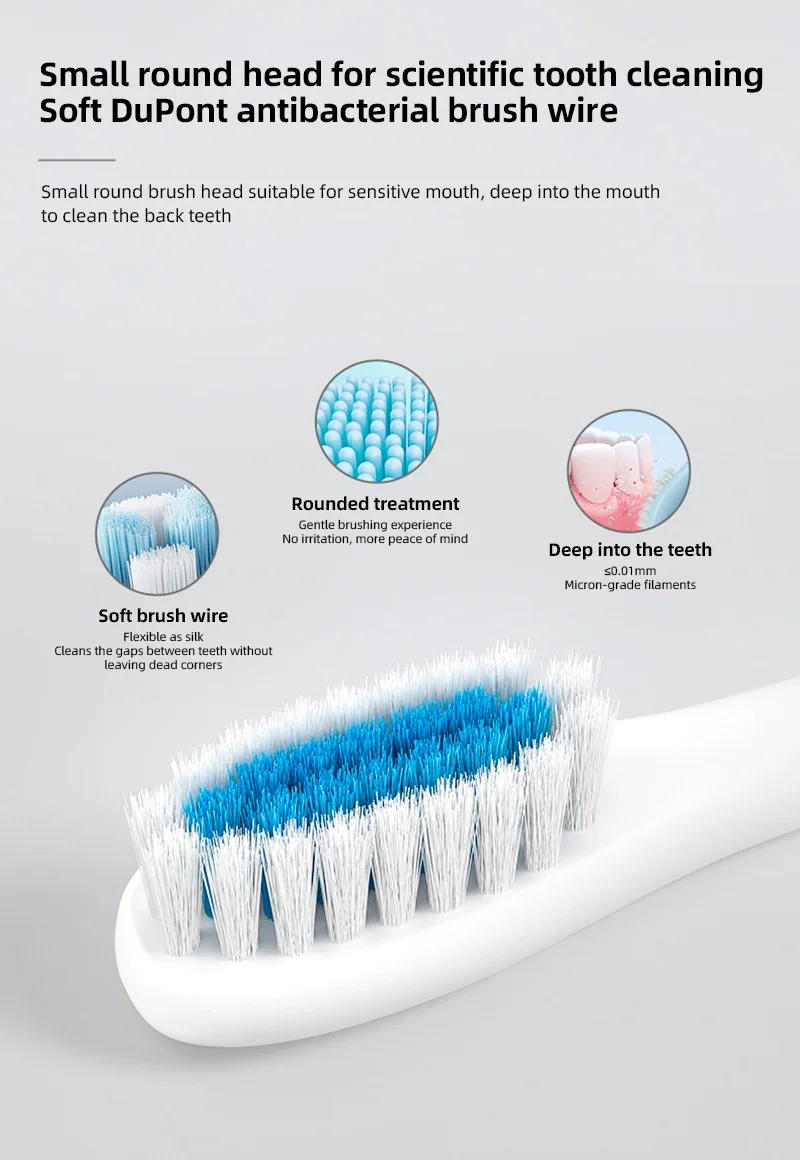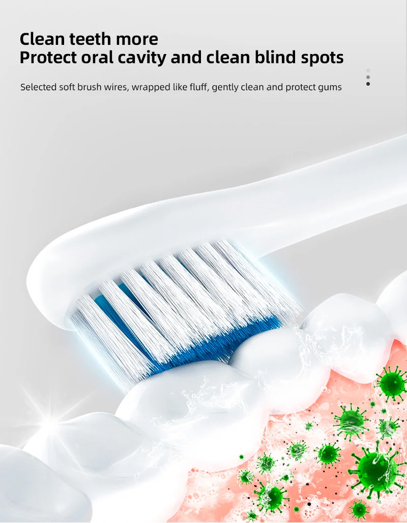â€Â¢ Soft-bristled brush head : This electric toothbrush uses a high-density 3D soft-bristled brush head to gently massage the teeth and gums, gently clean the mouth, reduce tooth damage, and bring the baby a comfortable brushing experience