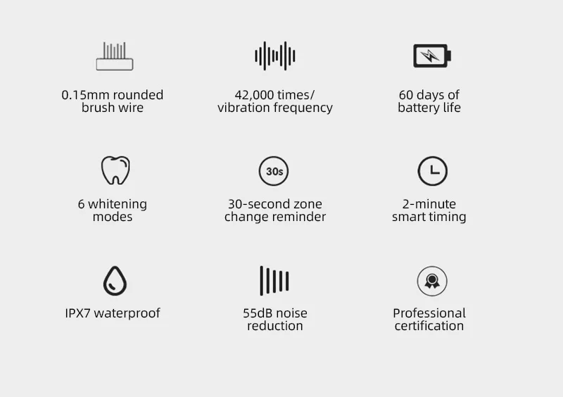 42000 strokes per minute, remove plaque effectively and thoroughly clean the teeth and mouth