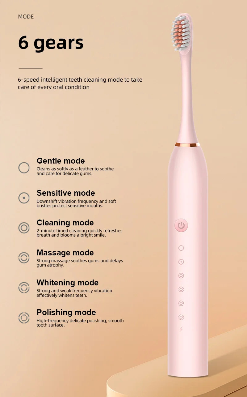1 review for Electric Ultrasonic Toothbrush Six Speed Mode Home Soft Hair USB Charging Waterproof Adult Tooth Cleaner Automatic Couple Set