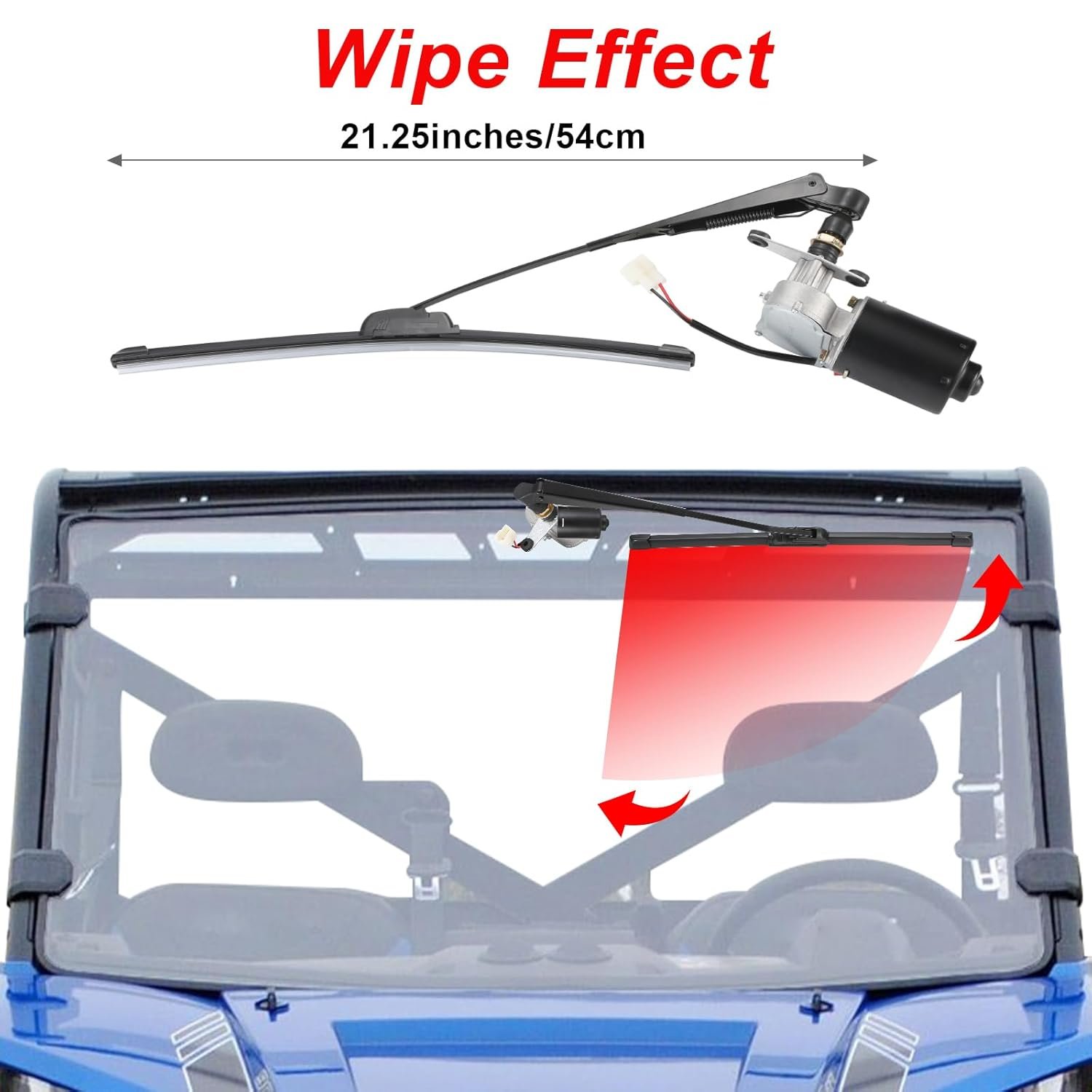 Electric UTV Windshield Wiper Kit, Universal 12V UTV Electric Windshield Wiper Motor Kit Compatible with Polaris RZR Ranger Mule Teryx, 16″ Windshield Wiper Blade, 90 Degree Wipe Motor