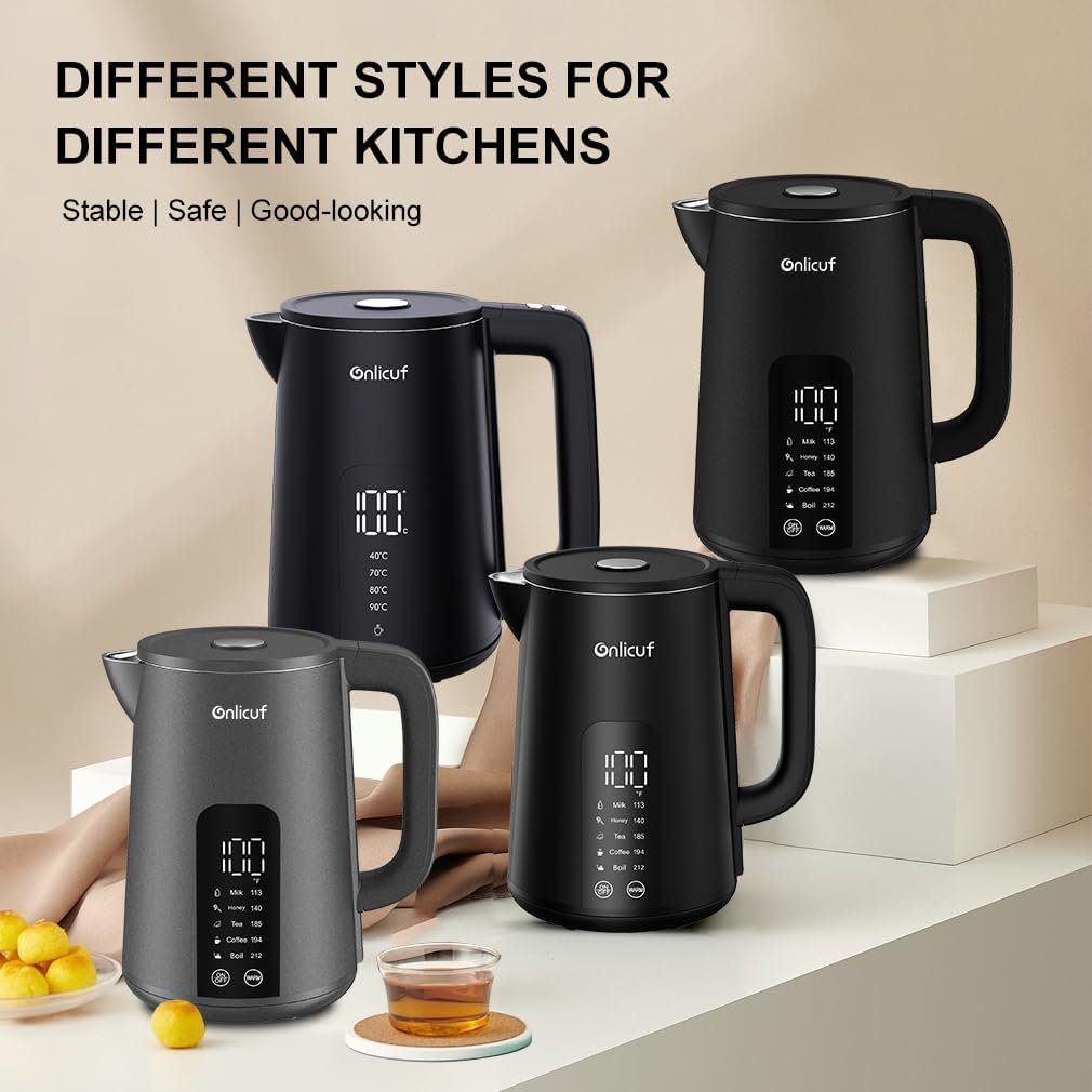 Electric Water Kettle,1.7L Double Wall Electric Tea Kettle with Temperature Control, Stainless Steel Water Boiler Heater, Digital Screen Teapot, Cordless, BPA-Free, Black