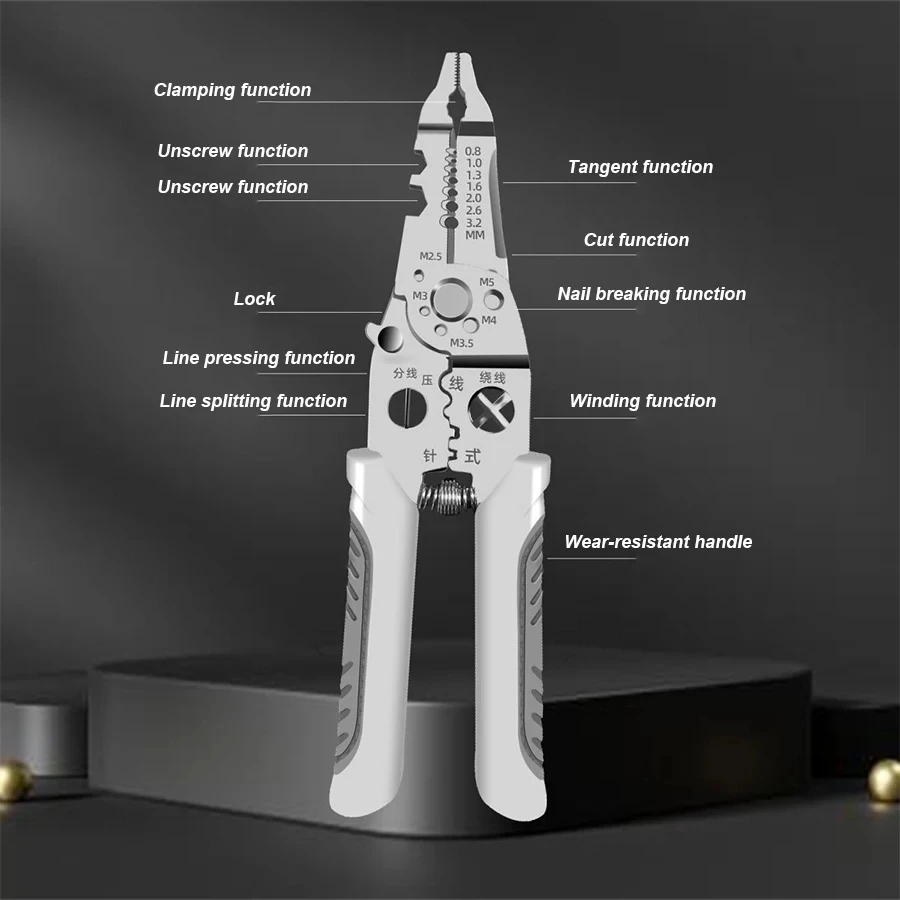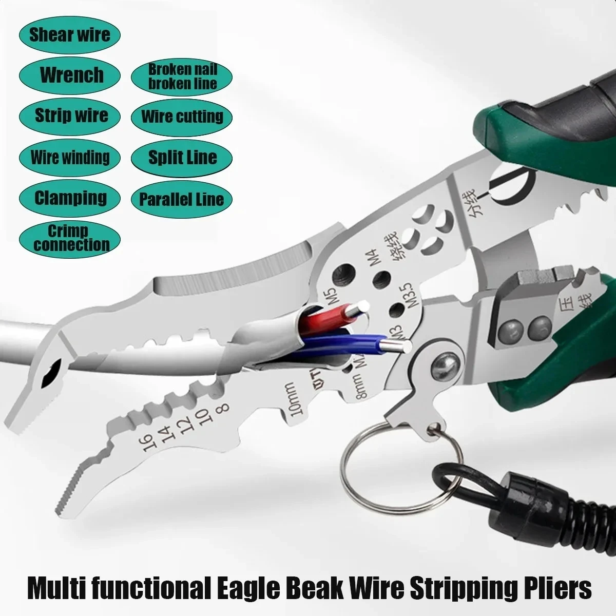 Electrician Wire Stripper Multifunctional Specific Cable Cutter Curved mouth Wire Stripper Crimping Pliers Winding Twister Tools