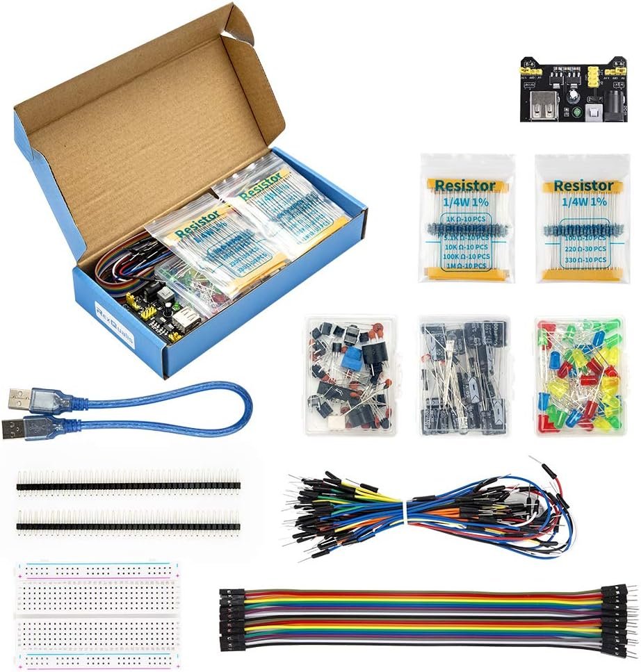 Electronics Basic Kit w/Power Supply Module, Breadboard, Jumper Wire, LED,Resistor, comes with more than 300pcs sensors and components for fun and simple electronic projects.