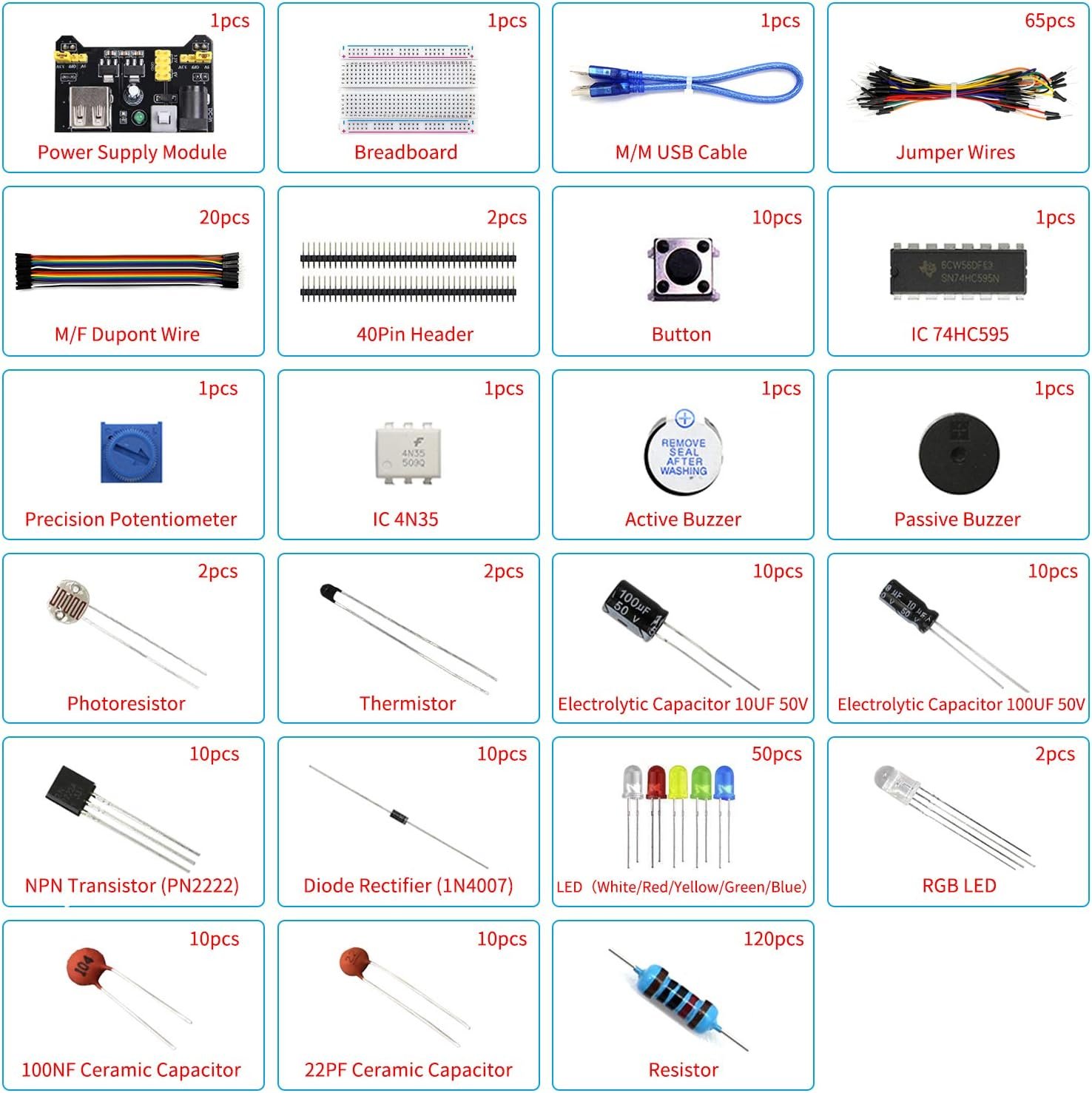 Safe and Secure Pakcage: Resistors/LED/Transistors and Integrated Circuits are individually packaged and labeled, and well-stored in a sturdy box