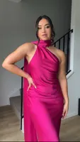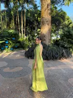 20 reviews for Elegant Solid Ribbon Women Halter Dress Off Shoulder Sleeveless Backless Slim Female Maxi Dresses 2025 Summer New Chic Lady Robe