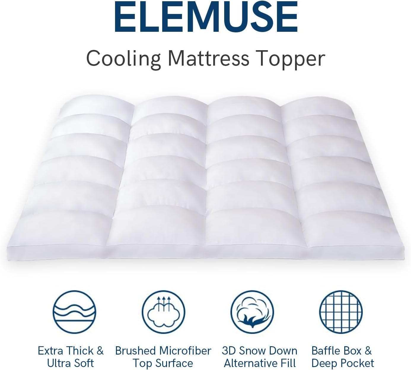 ELEMUSE King Mattress Topper for Back Pain, Extra Thick Mattress Pad Cover, Plush Soft Pillowtop with Elastic Deep Pocket, Overfilled Down Alternative Filling