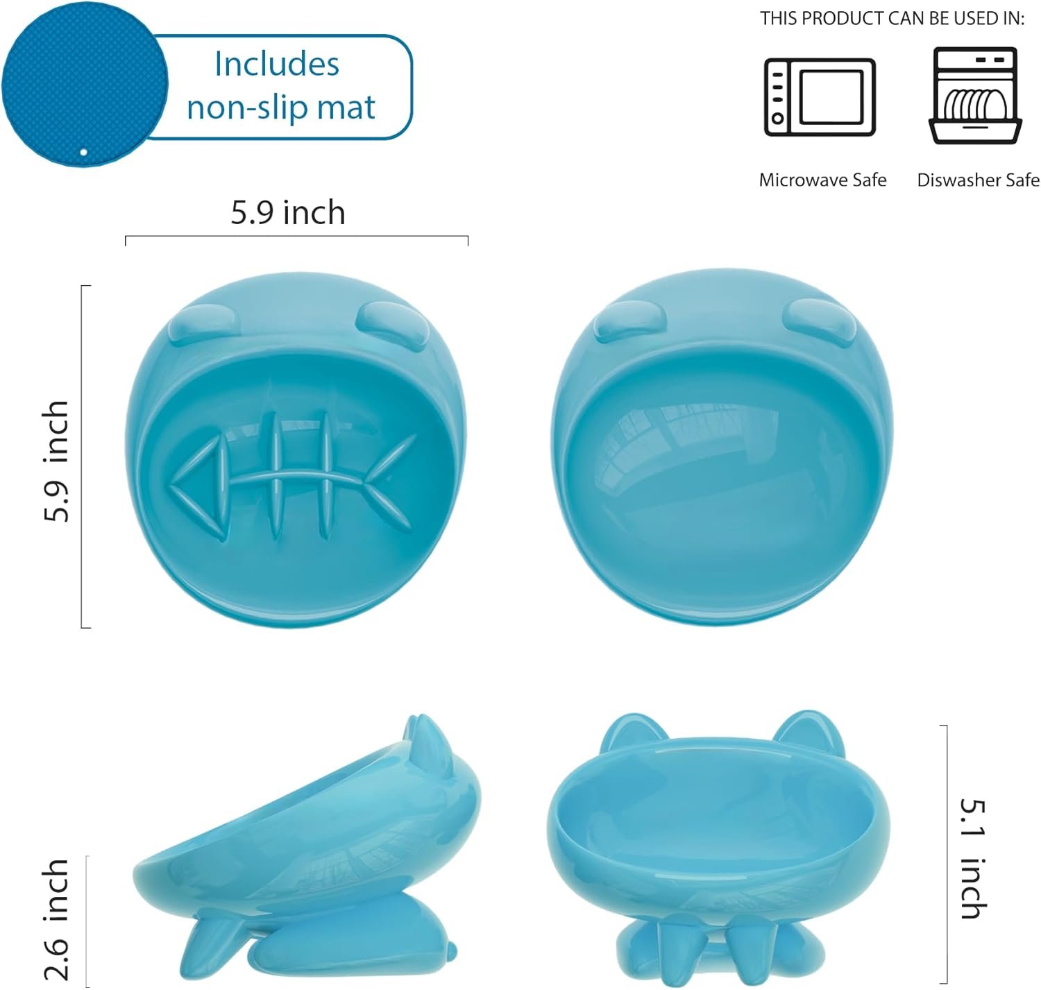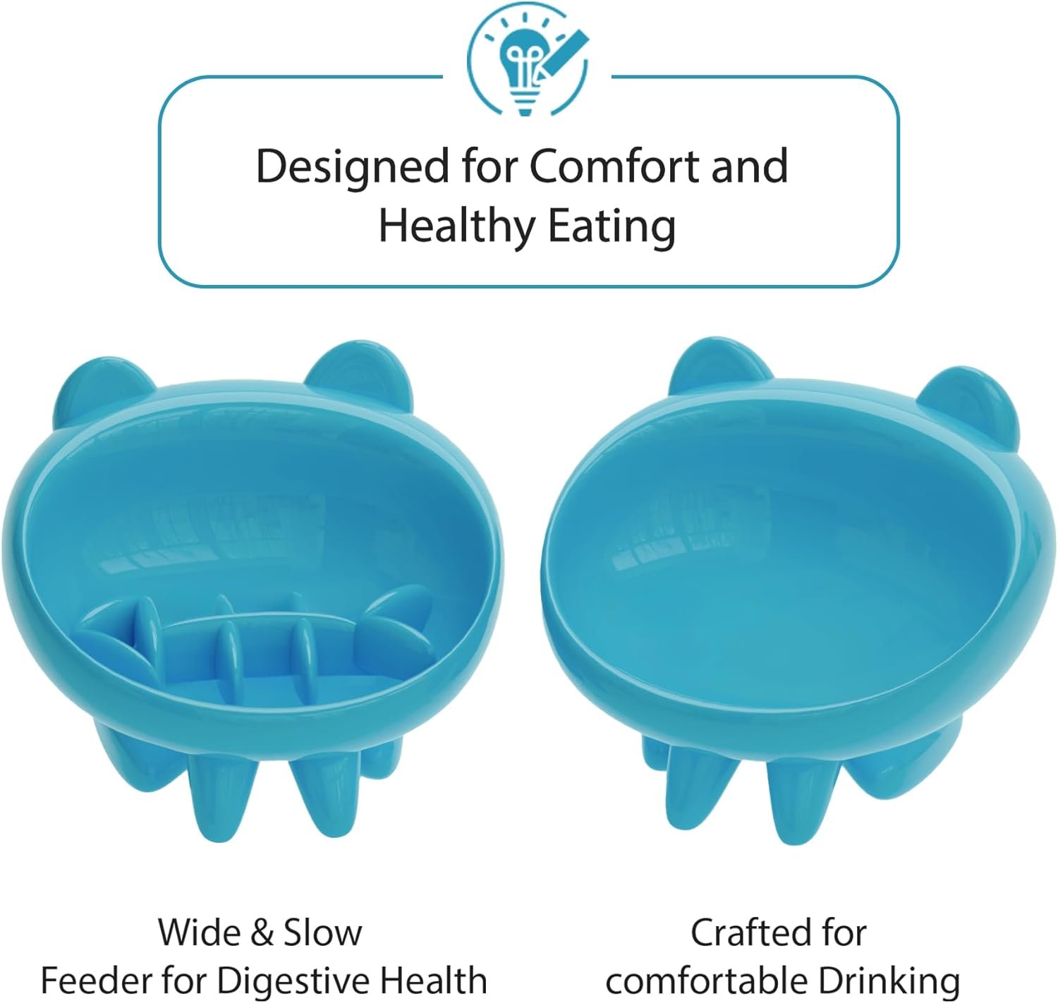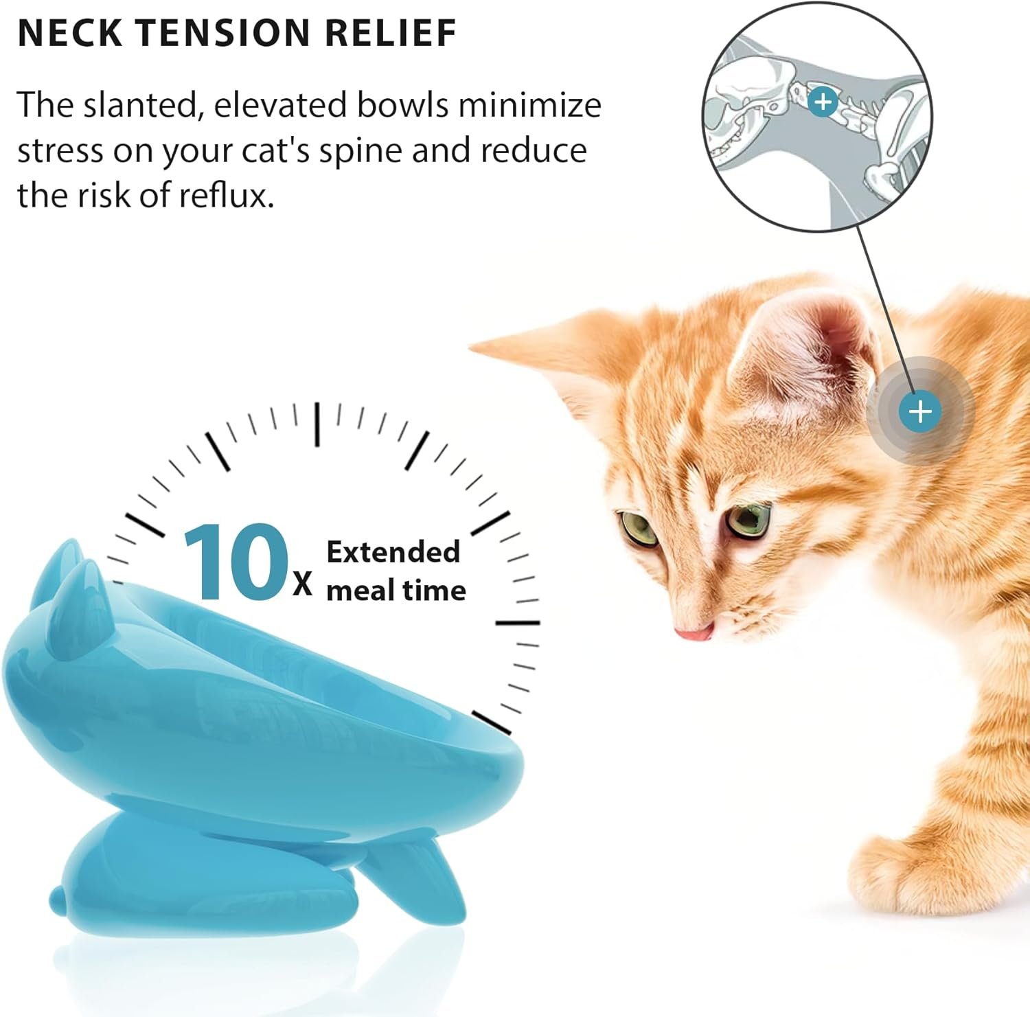 Elevated Slow Feeder Cat Bowls, Anti-Vomiting Cat Food Tilted Bowl with Non-Slip Mat, Whisker Friendly Food Dish Bowls are Custom-Designed for Senior Cats and Small Dogs (Blue)
