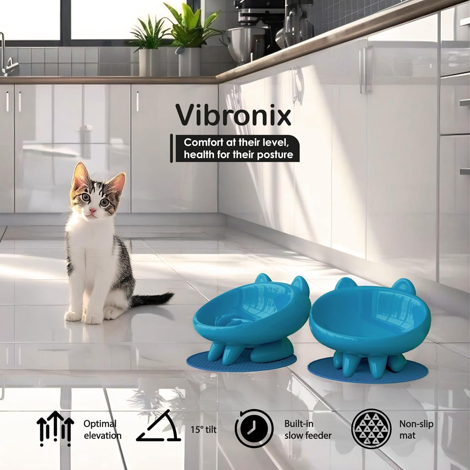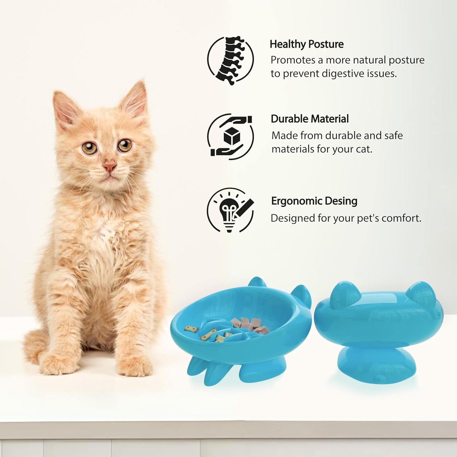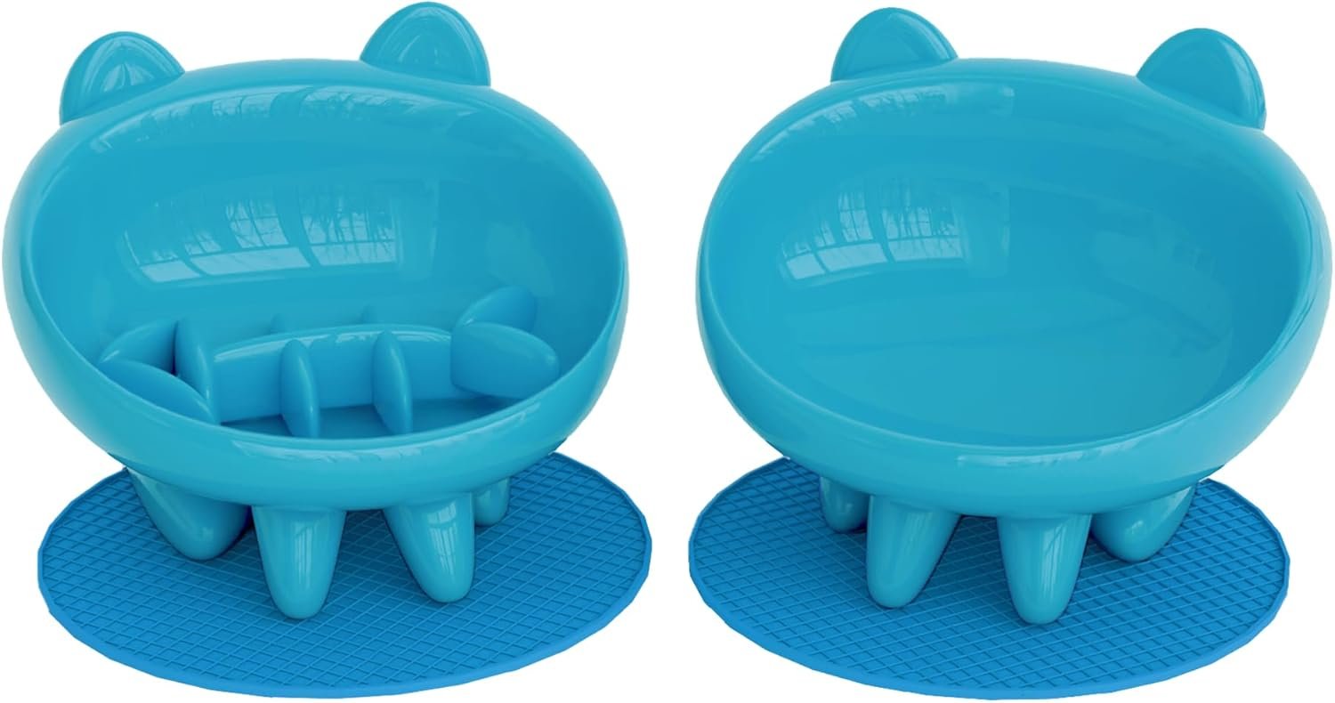 Elevated Slow Feeder Cat Bowls, Anti-Vomiting Cat Food Tilted Bowl with Non-Slip Mat, Whisker Friendly Food Dish Bowls are Custom-Designed for Senior Cats and Small Dogs (Blue)