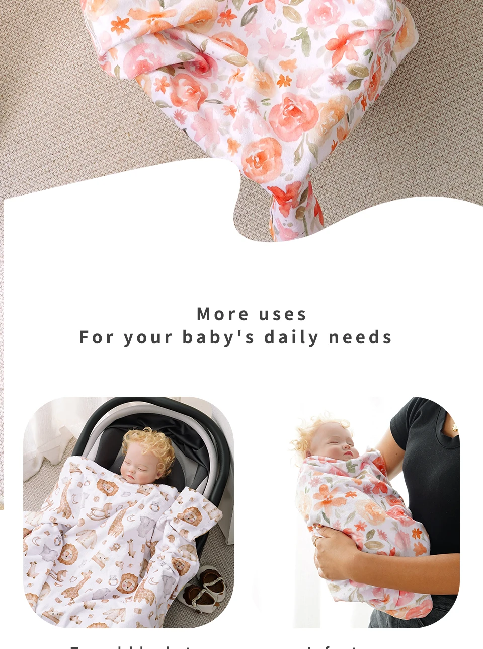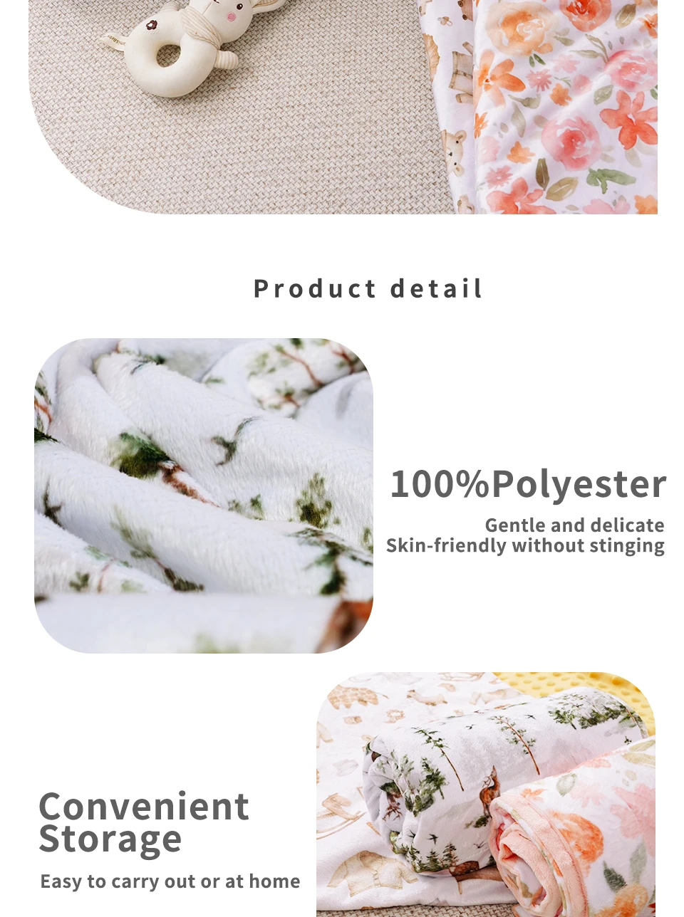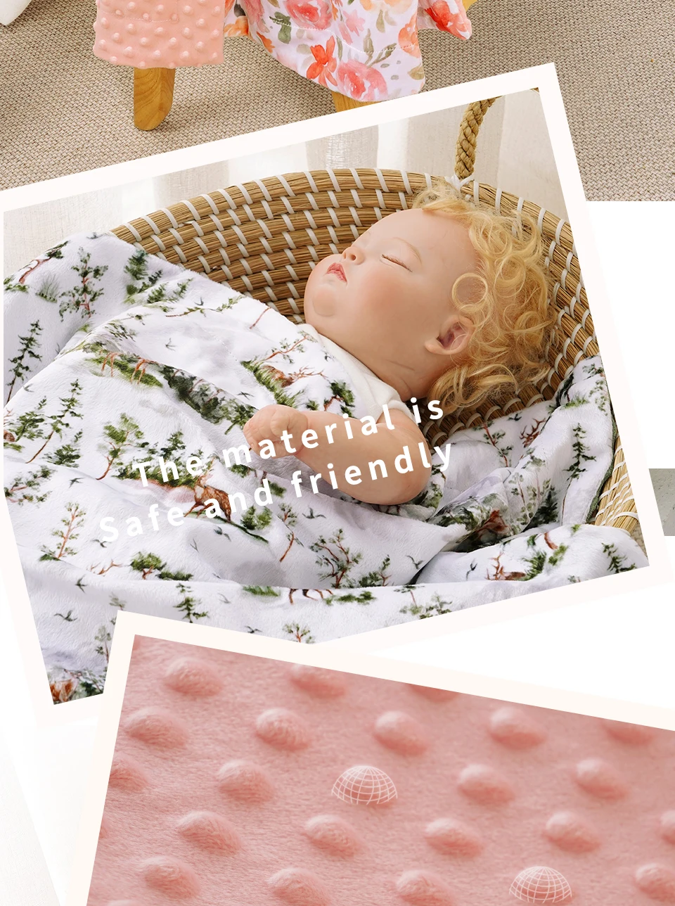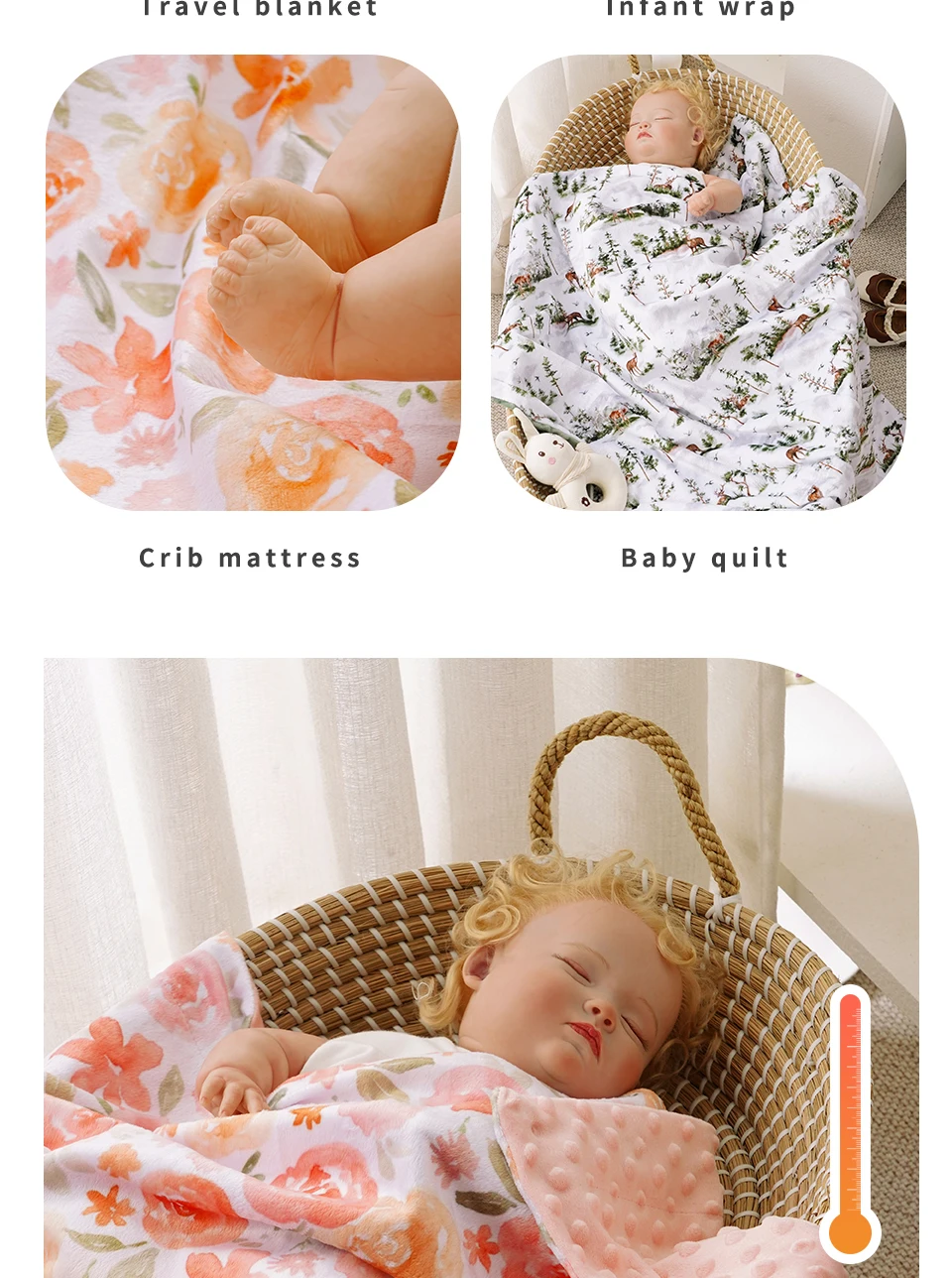 Elinfant 2 Layers Minky Beanie Baby Blanket Comfortable Cozy Warm Baby Quilt For Sleeping Newborn Infant Swaddle Wrap