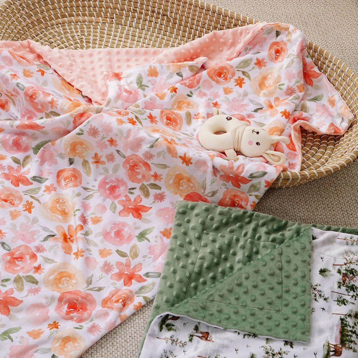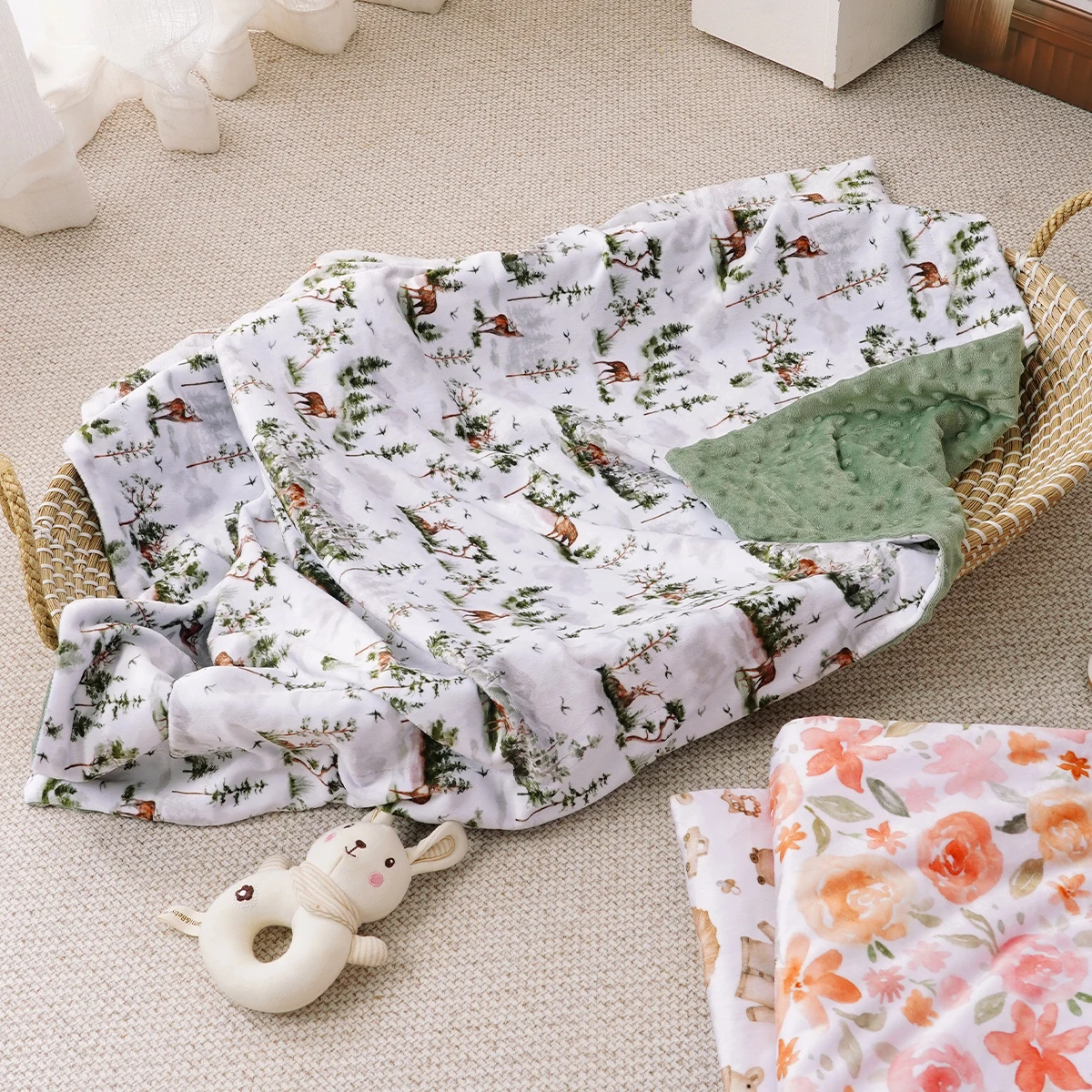 Elinfant 2 Layers Minky Beanie Baby Blanket Comfortable Cozy Warm Baby Quilt For Sleeping Newborn Infant Swaddle Wrap