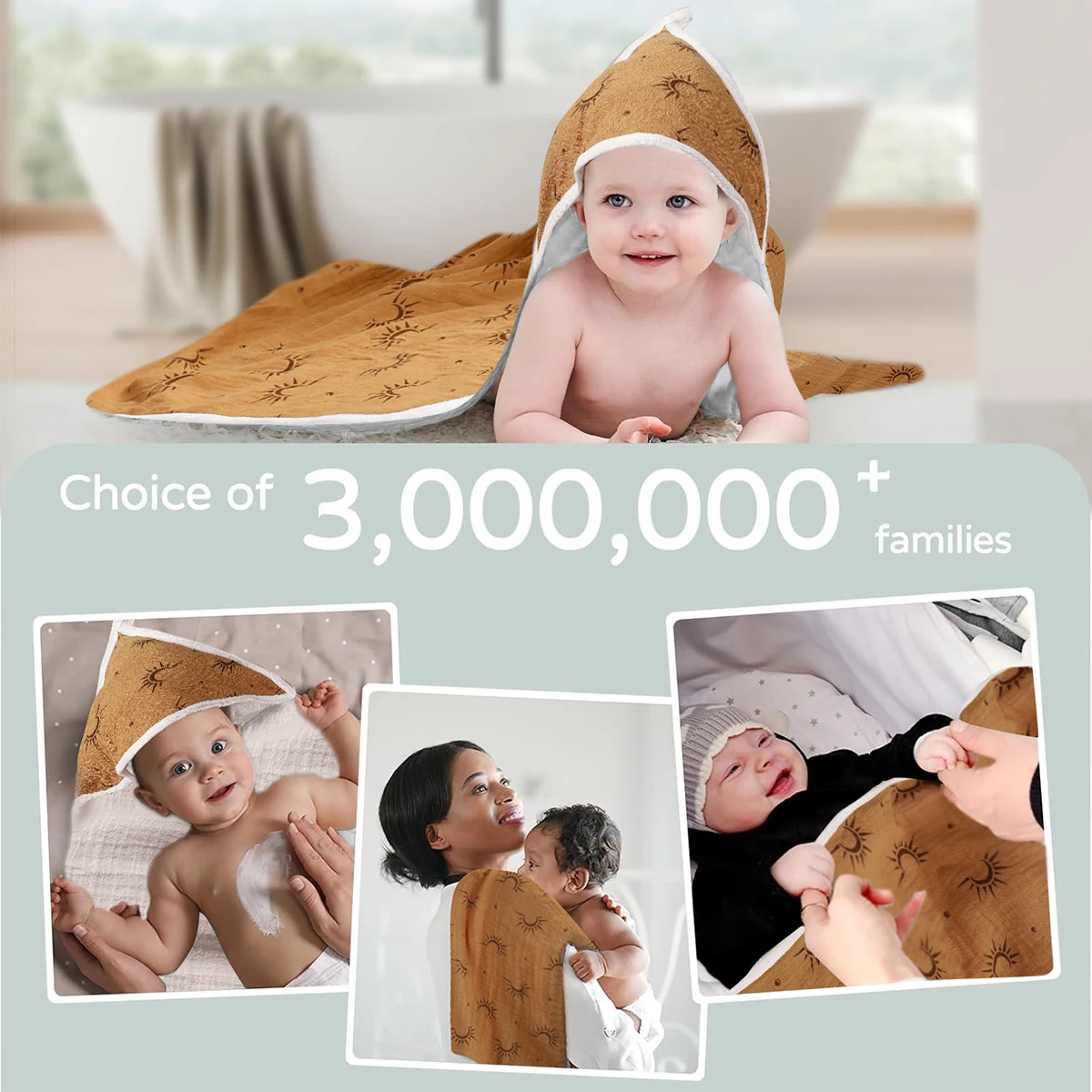Elinfant Baby Bath Towels Soft Newborn Hooded Towel Blanket,100% Cotton Crepe Cloth Baby Bathrobe