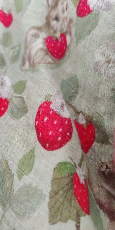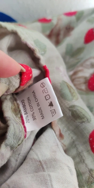 The diaper is poorly stitched at the edges – threads stick out in many places (minus one star for this), but everything else is excellent – the fabric is soft, the colors are pleasant.