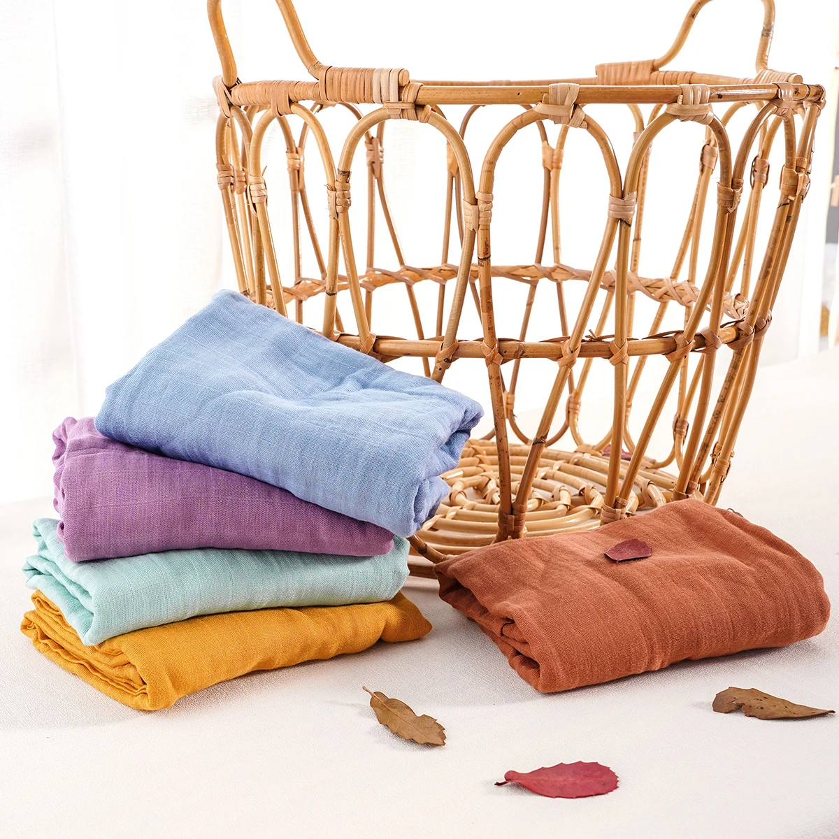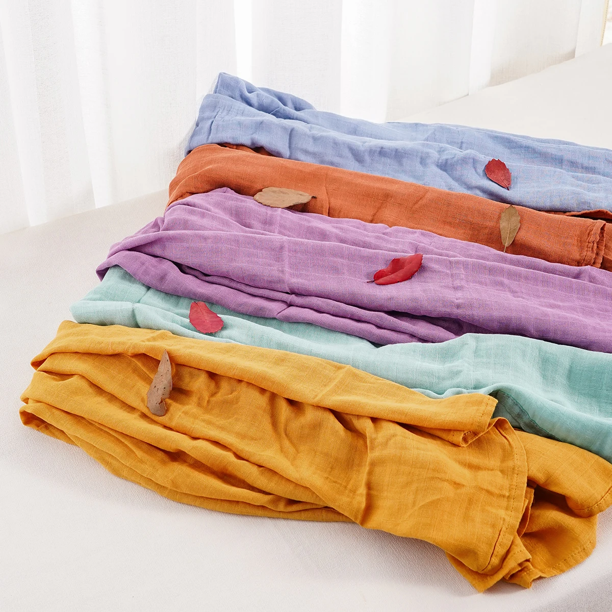 Elinfant Solid Color 100% Cotton Muslin Swaddle Blankets Bamboo Cotton Soft Newborn Babt Receiving Blanket