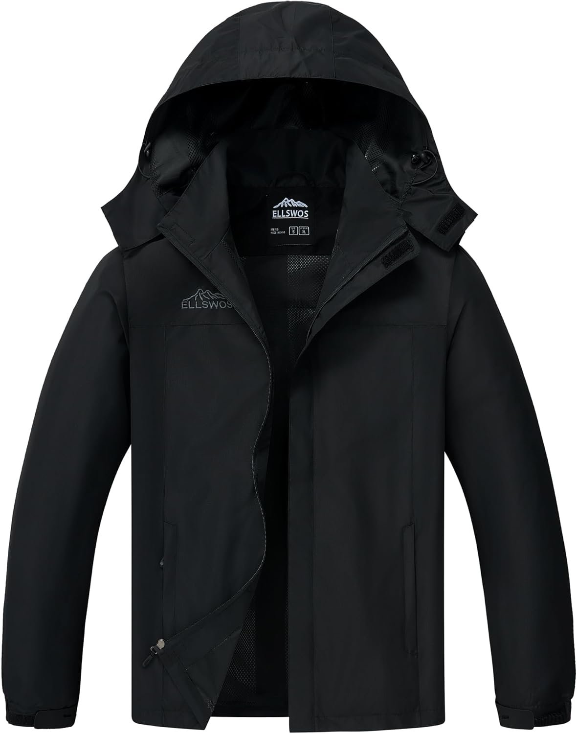 ELLSWOS Men’s Waterproof Raincoat Lightweight Rain Jacket with Detachable Hood Softshell Windbreakerl for Hiking Travel