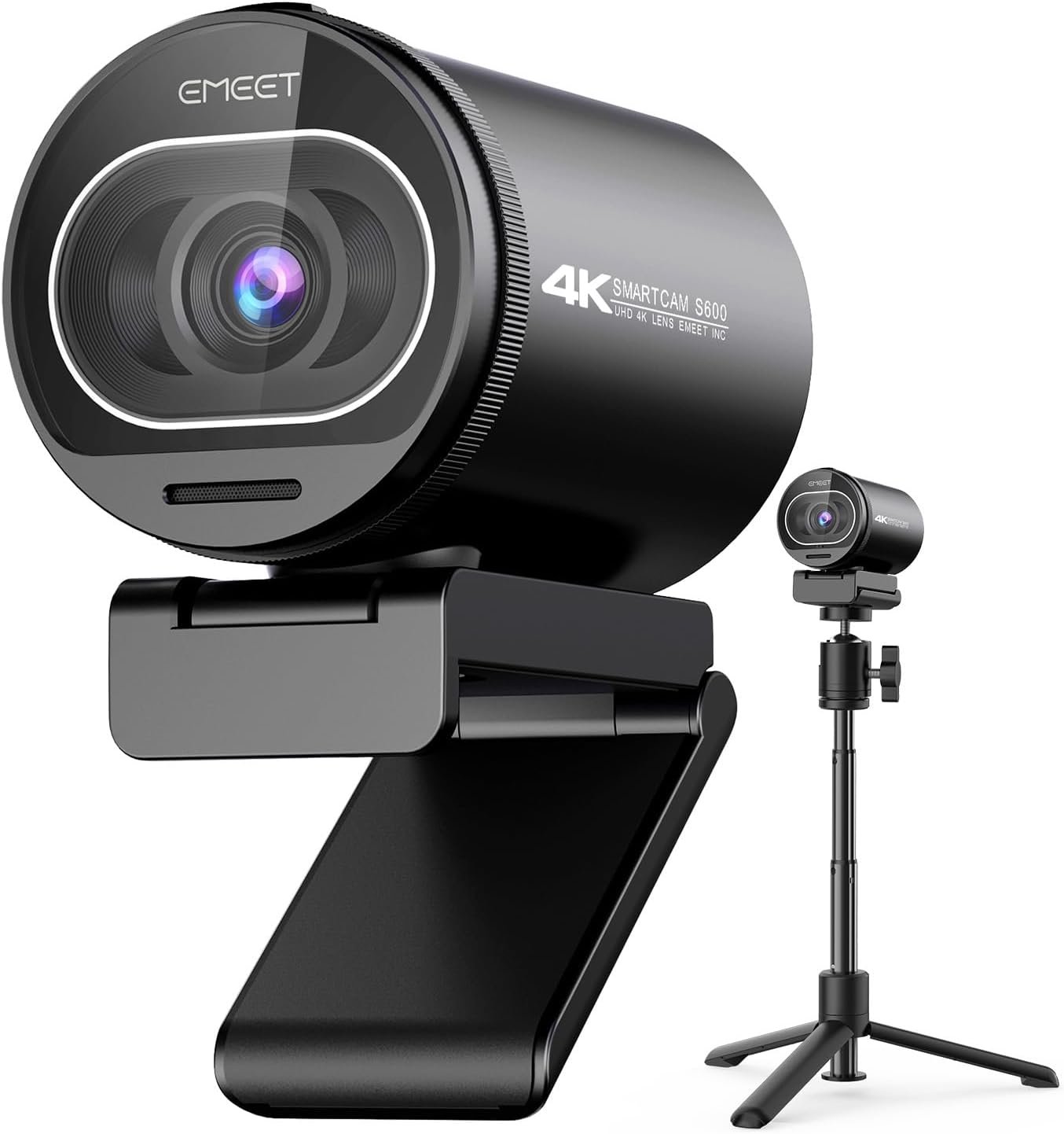 EMEET S600 4K Webcam with Tripod for Streaming – Sony 1/2.5” Sensor, PDAF Autofocus, 1080P@60FPS, 2 Noise Reduction Mics, Built-in Privacy Cover, 73° FOV, Streaming Webcam for Product/Game/Beauty
