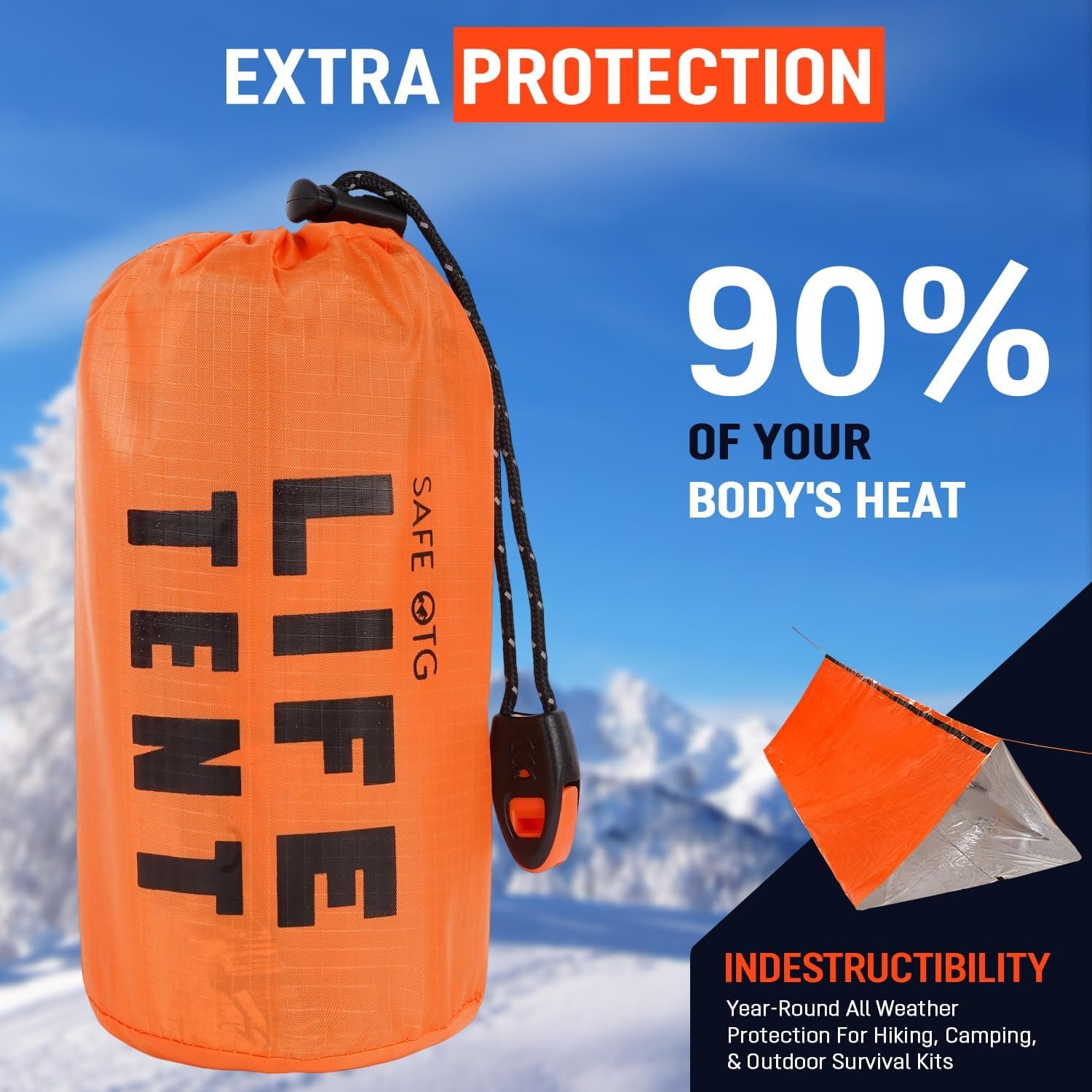 Rescue Essential: Perfect for emergency situations where warmth or protection from extreme weather conditions is required. Like sudden weather changes, disasters, earthquakes, rain, snow, hail and windy conditions. These insulated life tents make you safe in any weather and prevent hypothermia and shock by retaining up to 90% of the body heat.