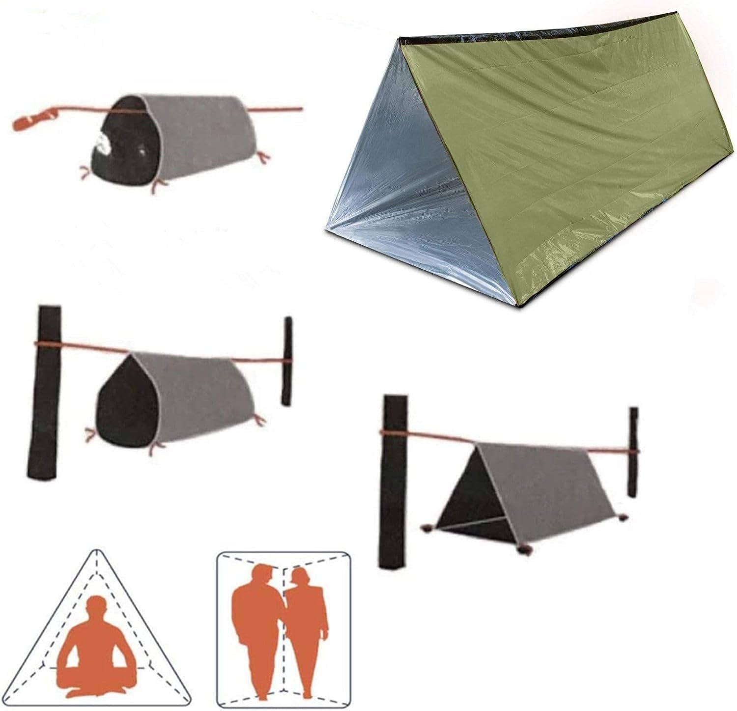 【Package】It come with 59 X 98.4inch 2-person mylar thermal shelter, large size can support full body protection,Practical and convenience, It’s a tube tent that comes with a”rope”/ridge line to run under the top so it will keep its shape. Compact easy to carry in backpack.