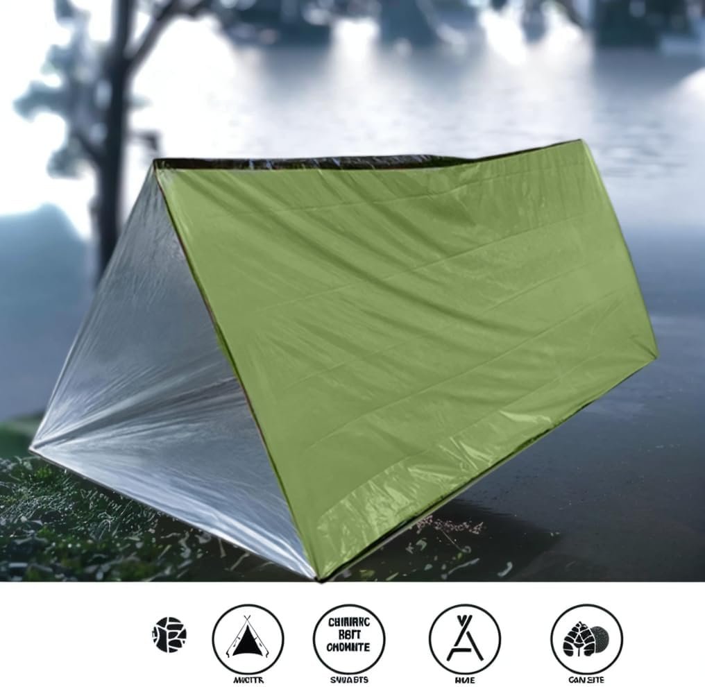 【Emergency Tent Material】JUBSOSCAMP Survival Tent is constructed from Mylar, a material that is resistant to tearing and has a specialized coating designed for optimal durability in various weather conditions. It offers ample space for two adult individuals and facilitates rapid deployment, making it suitable for use in a variety of survival scenarios, including those in cold or hot climates.