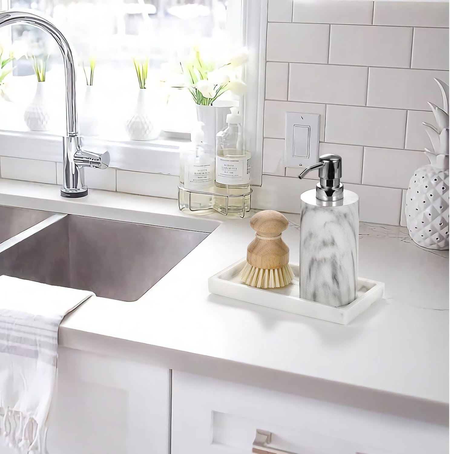 Multi-Purpose Use: This marble tray holds soap and other essentials in the bathroom or kitchen perfectly. According to your personal needs, it can be used as bathroom tray, kitchen sink tray, soap dispenser tray, vanity tray, jewelry tray, candle tray. It also suits small object like rings, earrings, keys, watches, perfume and other decorative items to keep things neat and organized.