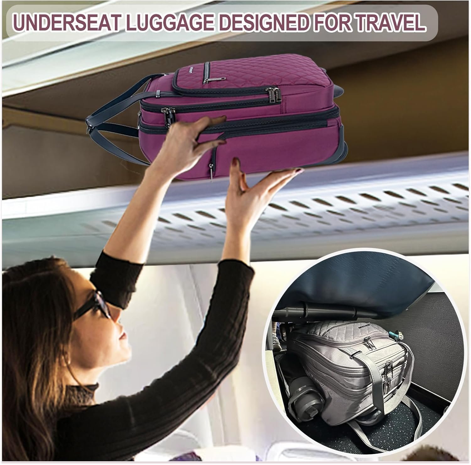 【LARGE CAPACITY ROOMY COMPARTMENTS】Our underseat carry on with separated compartments and pockets which can provide roomy space for your computer,iPad, files, wallet, cards, clothes and more your items. A side pocket can hold your umbrella, water bottle, etc. The padded laptop compartment that fits laptops up to 15.6 inches. Easy-access front front pocket for small items convenient use