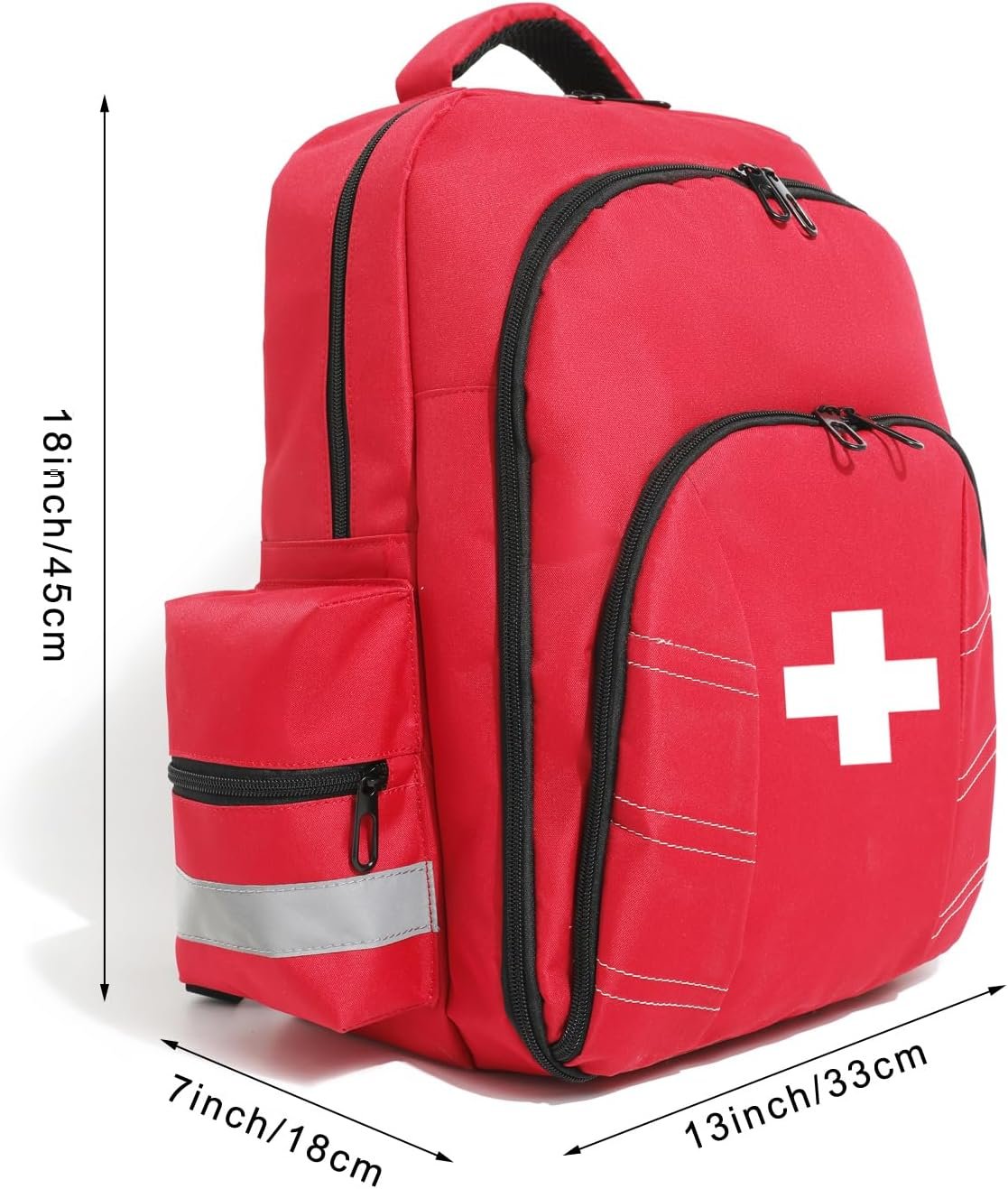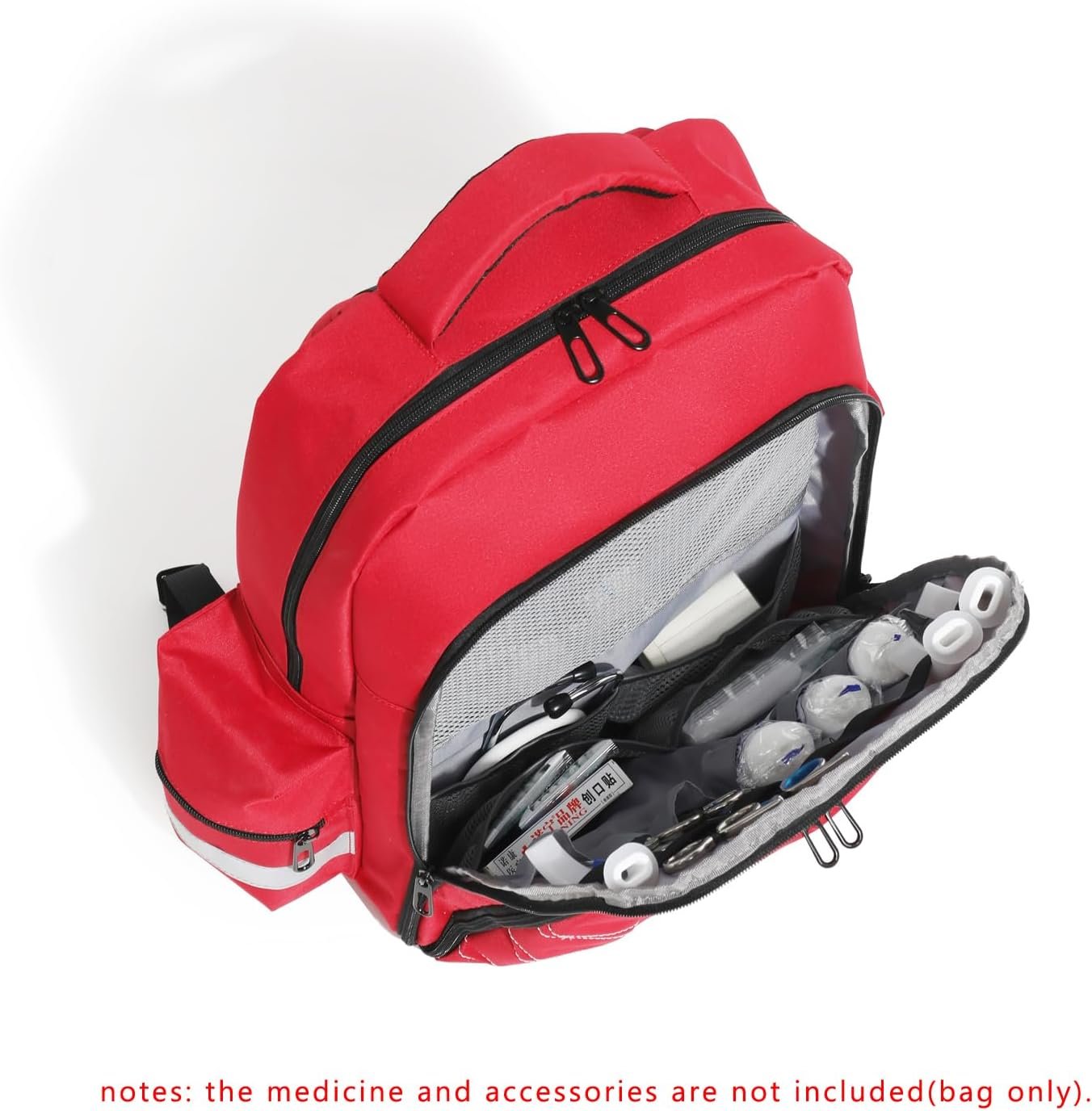Professional Empty First Aid Bag – Your Reliable Partner in Critical Moments When seconds count during an emergency, every detail matters. The Multi-Pocket Emergency Medical Bag is engineered for first responders, outdoor adventurers, and safety-conscious families who demand organization, durability, and rapid access. Whether you’re tackling a wilderness trail, responding to a trauma scene, or safeguarding your home, this bag ensures lifesaving tools are always within reach. Why Choose This Trauma Ready Kit? ✔️ Smart Storage, Faster Response: With compartments (including mesh pockets, zippered sleeves, and elastic retainers), strategically organize bandages, shears, IV supplies, or personal medications. The internal divider prevents gear from shifting during transport. ✔️ Built for the Toughest Environments: Constructed with military-grade polyester and waterproof base, it resists tears, UV rays, and sudden downpours. Reinforced metal zippers glide smoothly even under heavy load. ✔️ Ergonomic & Hands-Free Mobility: Adjustable shoulder strap and padded back panel distribute weight evenly, while the top handle allows quick grab-and-go. Compact 18″X13″X7″ size fits in car trunks, backpacks, or emergency cabinets. ✔️ Customize Your Lifesaving Kit: Start empty and build your own – compatible with standard trauma supplies, CPR masks, or survival gear. Add a red cross patch for instant identification. ✔️ Visibility That Saves Lives: High-contrast red exterior with 360° reflective strips ensures recognition in darkness. The “RED CROSS” label communicates urgency to bystanders. Ideal For: EMS Professionals & Firefighters (keeps PPE organized) Family Disaster Preparedness (store emergency blankets, flashlights, etc.) Outdoor Enthusiasts (hiking, camping, boating)