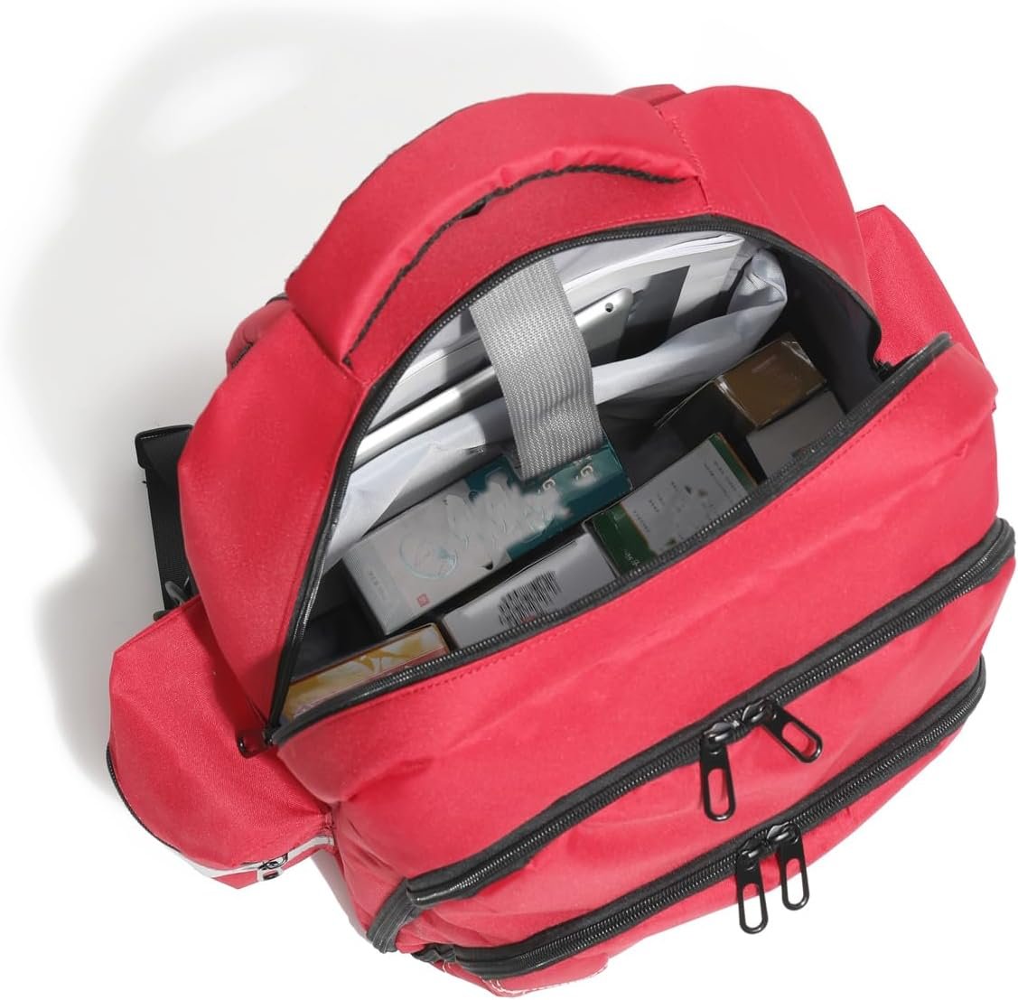 Empty First Aid Backpack Multi-Pocket Emergency Medical Organizer for First Responders Trauma Camping Hiking Travel Portable Red Trauma Bag (Bag Only)