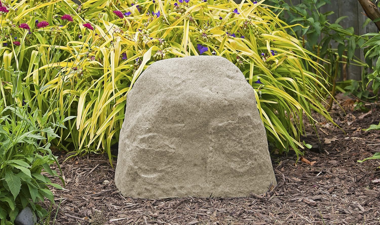 Enhance your yard’s appeal with an EMSCO landscape rock! With its natural color, this artificial rock has a natural appearance that blends well with gardens, lawns, and landscapes. It’s natural-looking exterior also has a realistic texture that will add a feel of authenticity to your lawn. With dimensions of 11” x 11.5″ x 8.5″ (height x length x width), this plastic rock is easy to install and lightweight. Each rock has two stakes included to anchor the product securely to the ground. It is also lightweight, so you can pick it up and place it anywhere in your landscape. Each artificial rock is durable and resilient, as it is able to withstand extreme weather conditions. It has a high-density resin construction that displays a very sturdy and realistic-looking structure. Polymer-made, these rocks have two stakes included so that they are anchored to the ground and remain upright even against extreme thunderstorms and intense gushes of wind. This natural-looking rock can also be placed over wells, pipes, pump, sprinkler valves, and other fixtures to block them from sight, thus enhancing the aesthetic of the terrain. It can be used to cover up utilities in lawns, yards, or landscapes.