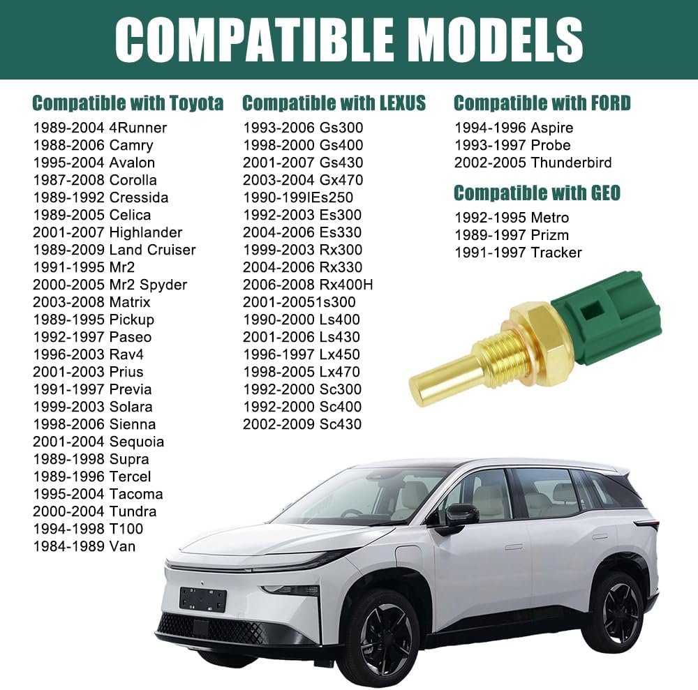 Compatible Models:This radiator temperature switch is suitable for Ford Aspire 1994-1996, for Lexus GS400 1998-2000, for IS300 2001-2005, for Celica 1989-2005, for Corolla 1989-2008, for Pickup 1989-1995 and other models, please check whether your model is compatible before purchase