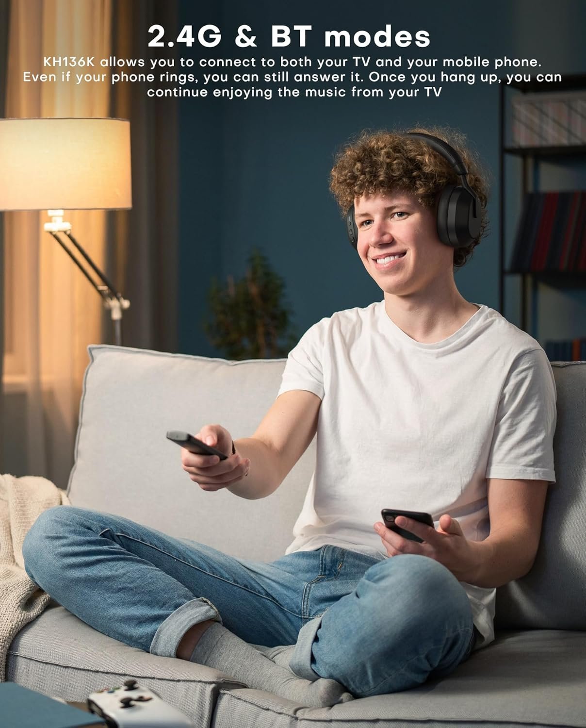 LED Display and Easy Setup: The KH136K base features a unique LED display, providing clear, easy-to-read indicators for connected devices, a thoughtful design that shows care for elderly friends. Simply plug the audio cables (optical, AUX 3.5mm, or RCA) into the transmitter and TV ports, power everything on, and you’re ready to go, without complicated Bluetooth pairing steps. It’s compatible with most TVs, ensuring a seamless connection for an enjoyable TV experience