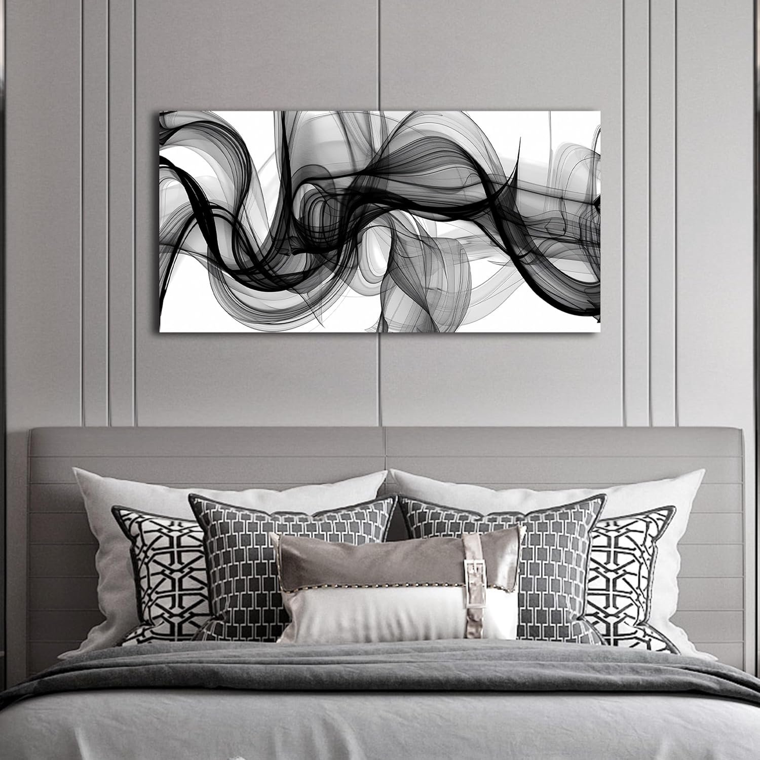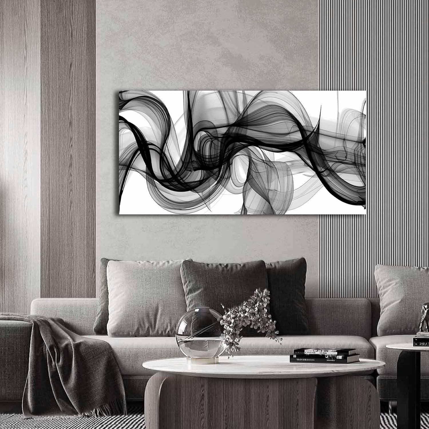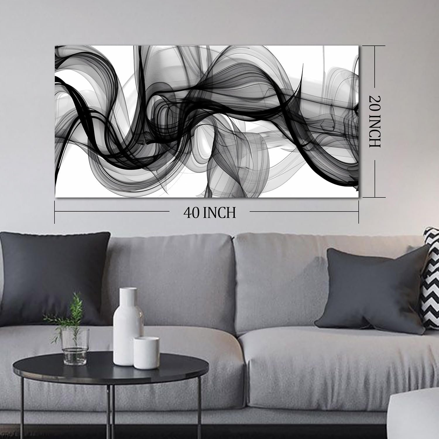 ENTANUB Abstract Wall Art for Bedroom, Black and White Canvas Wall Decor for Living Room, Smoke Picture Print, Size 40 x 20 Inches