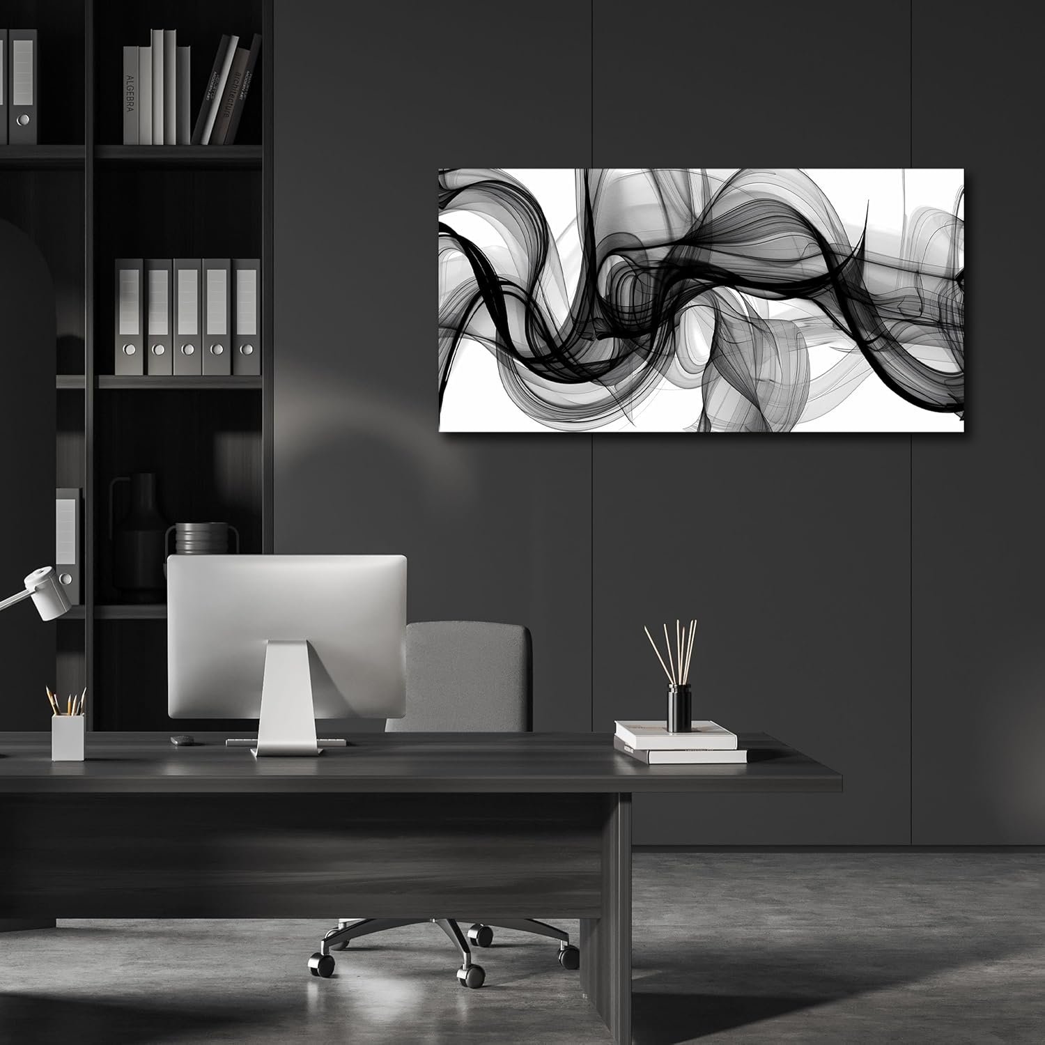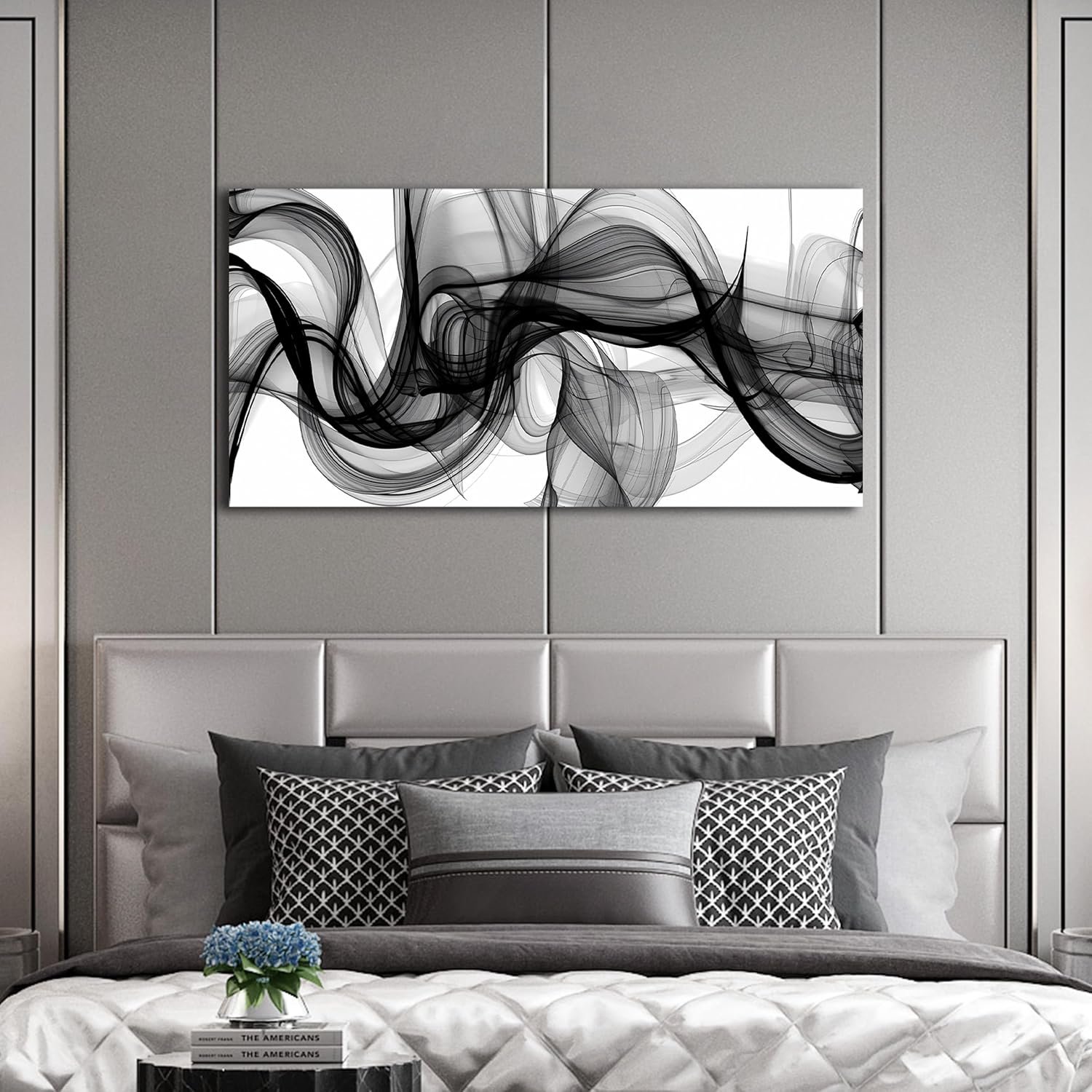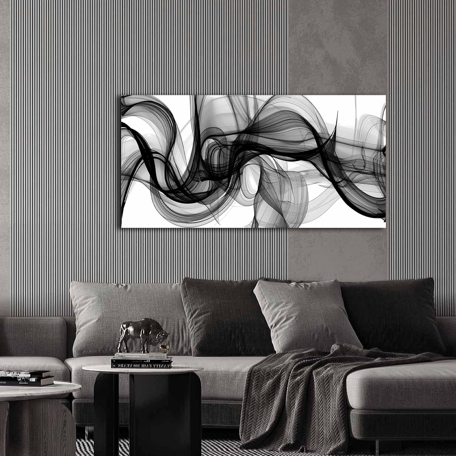ENTANUB Abstract Wall Art for Bedroom, Black and White Canvas Wall Decor for Living Room, Smoke Picture Print, Size 40 x 20 Inches
