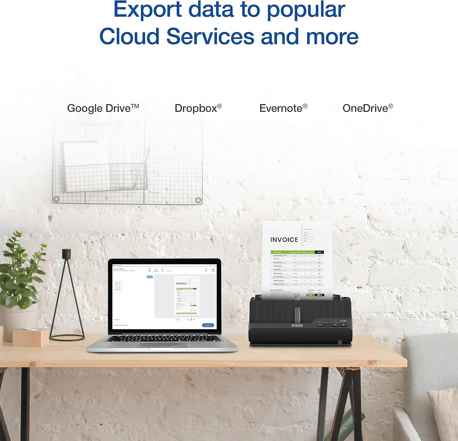 Powerful software included — easy scanning with intuitive Epson ScanSmart software (3); preview, email, upload and more; automatic file name suggestion and OCR help save time