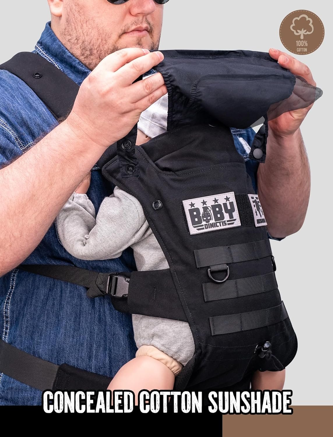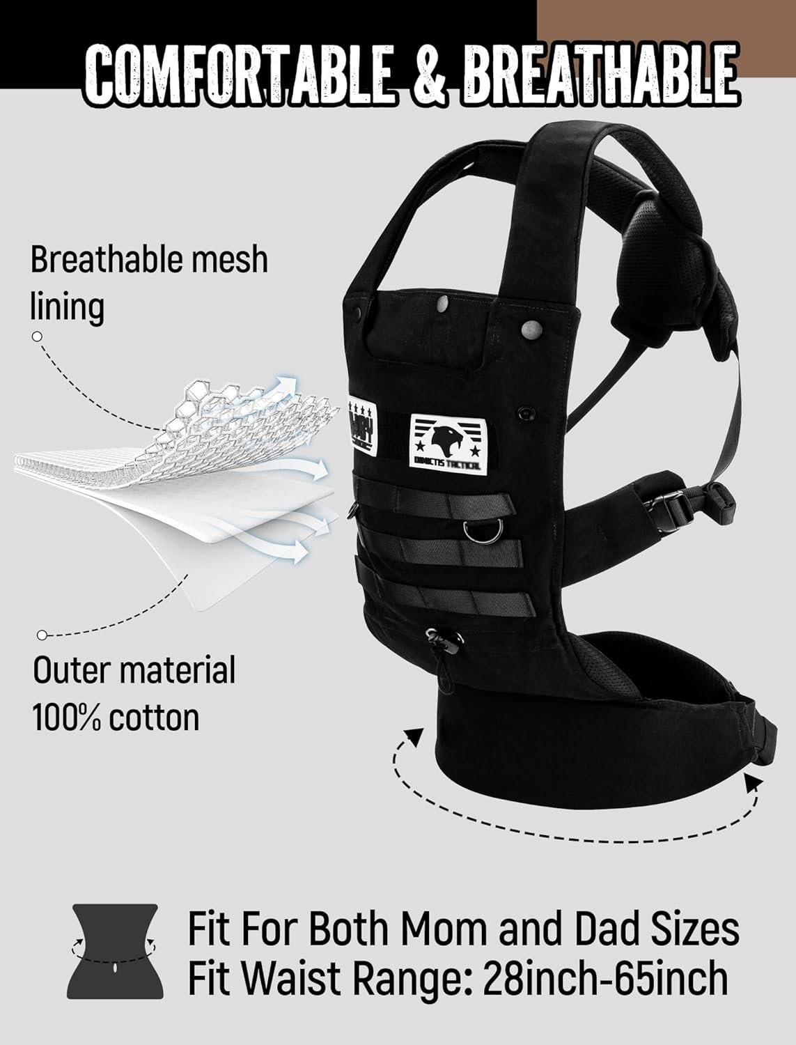 Ergonomic Lumbar Support Baby Carrier for Infants to Toddlers (8-33 lbs), Cozy and Lightweight Military Baby Carrier for Big and Tall Parents- Black