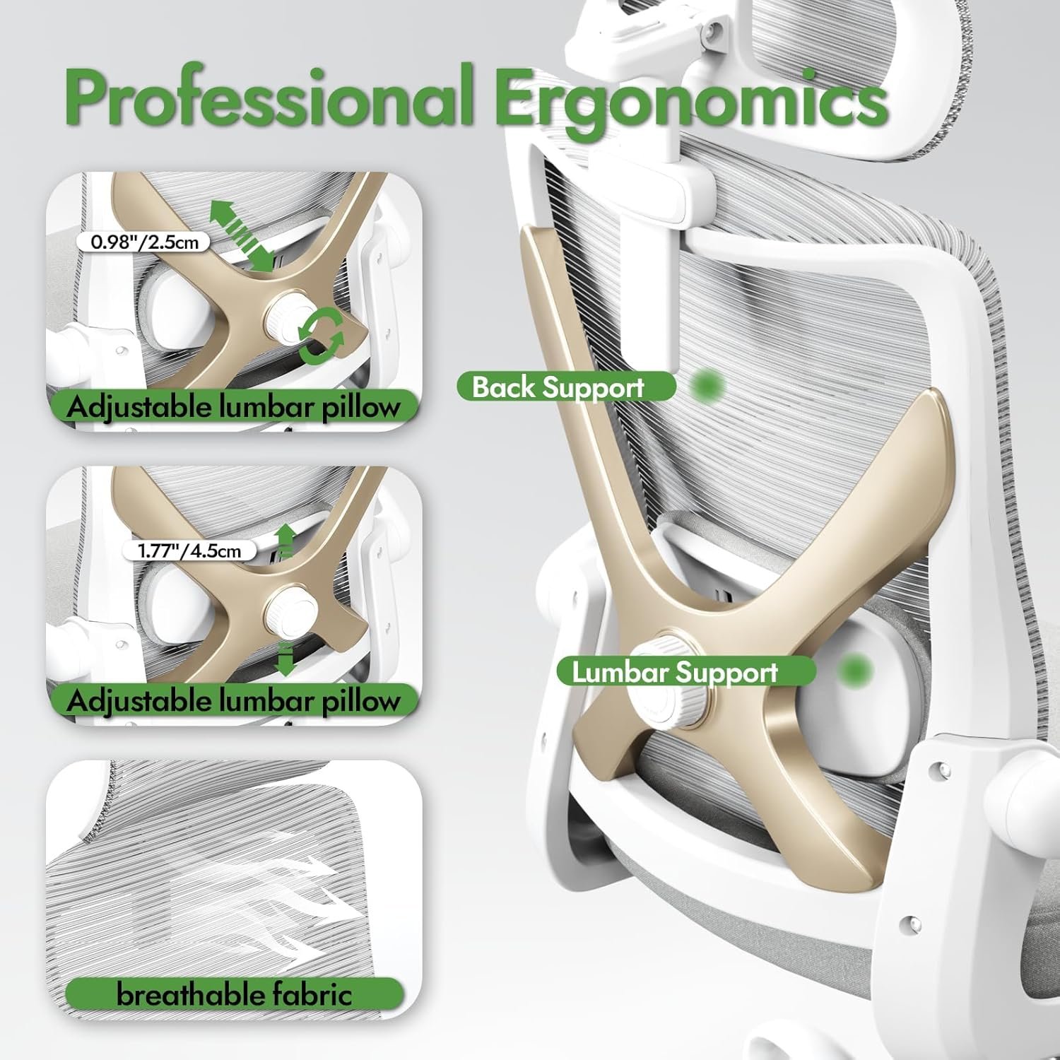 Ergonomic Office Chair – X-Shaped Computer Desk Chair Comfy, Gaming Chair, Office Chair with Lumbar Support, Mesh Office Chairs with Headrests, Desk Chair for Long Hours (Grey Gold)
