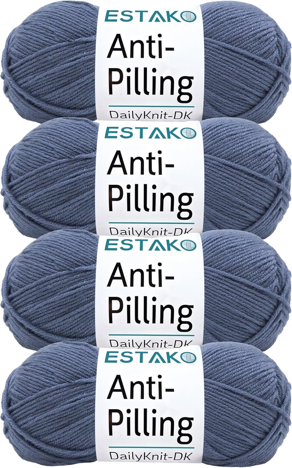Estako DailyKnit-DK – (4 Skeins Pack) – 100% Anti-Pilling Acrylic Yarn – Soft DK Light Weight #3 – (4 x 3.52 oz / 4 x 273 yds) – for Knitting & Crocheting (80051 – Denim Blue)