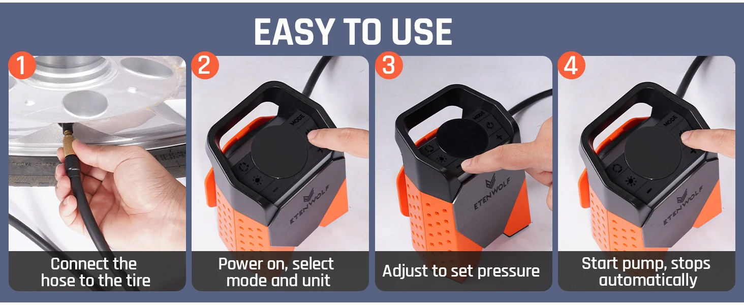 12 reviews for ETENWOLF ZEPHYR S3SE Portable Air Compressor 100% Duty Cycle Car Tire Inflator 7800mAh for Cars, Motorcycles, Bicycles Balls