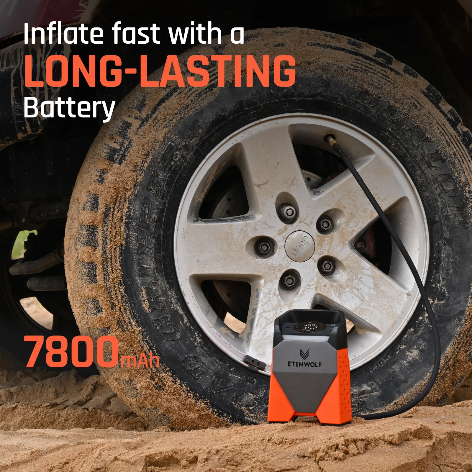 ETENWOLF ZEPHYR S3SE Portable Air Compressor 100% Duty Cycle Car Tire Inflator 7800mAh for Cars, Motorcycles, Bicycles Balls