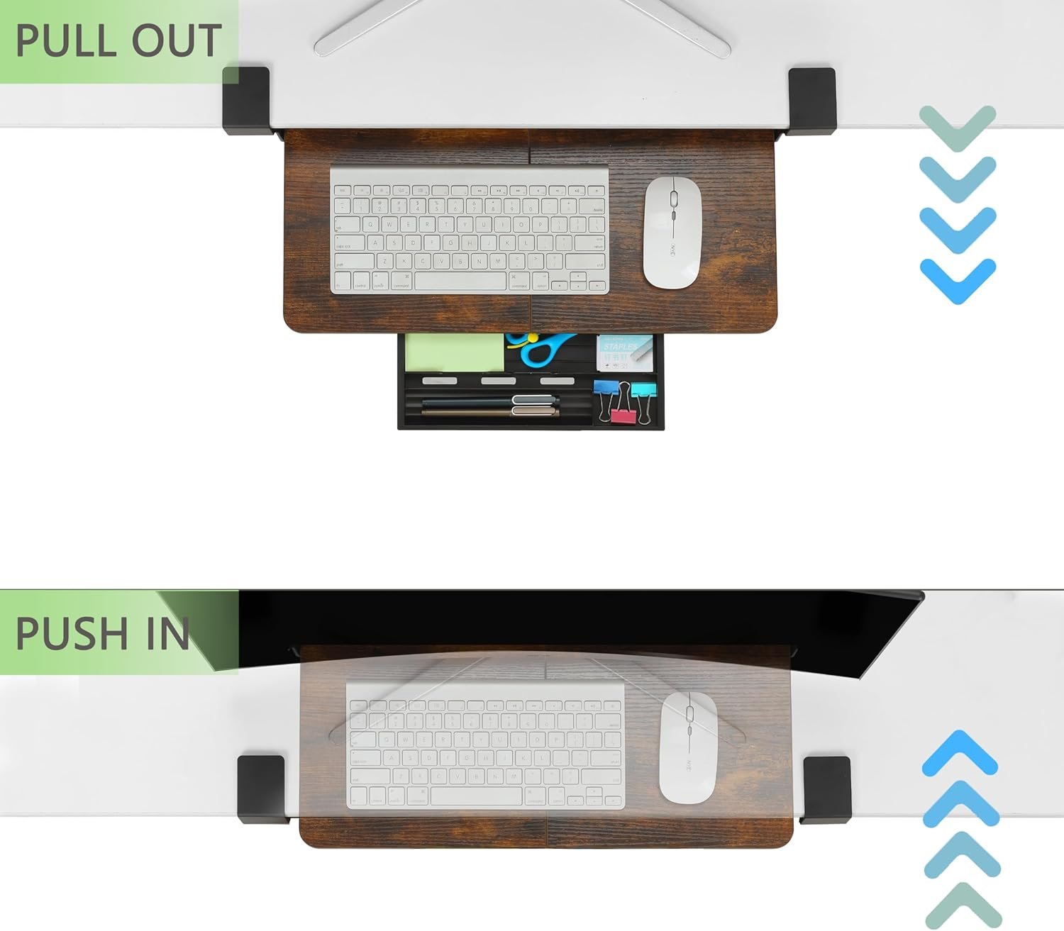 SLIDING TRAY – The retractable smooth sliding rail design allows the desk drawer to glide smoothly forwards and backward. It encourages you to keep your arms and wrists in a neutral position and aids in the prevention of injuries caused by poor posture. Simply slide the tray under your desk when not in use and quickly pull it out when you need more space.