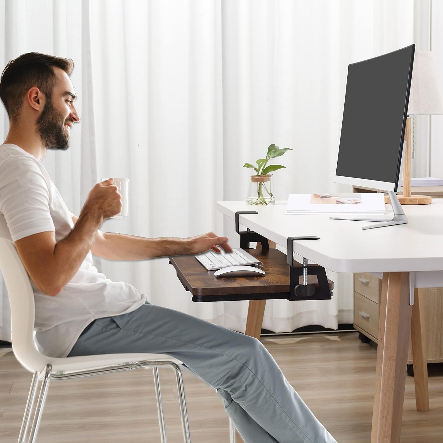 ERGONOMIC BENEFITS -The Desk Clamp Keyboard Trays are designed to raise the keyboard and mouse to a more ergonomic height, reducing strain on the shoulder and neck muscles; eliminating potential pressure on the wrists; encouraging proper posture, and allowing for proper viewing distance.